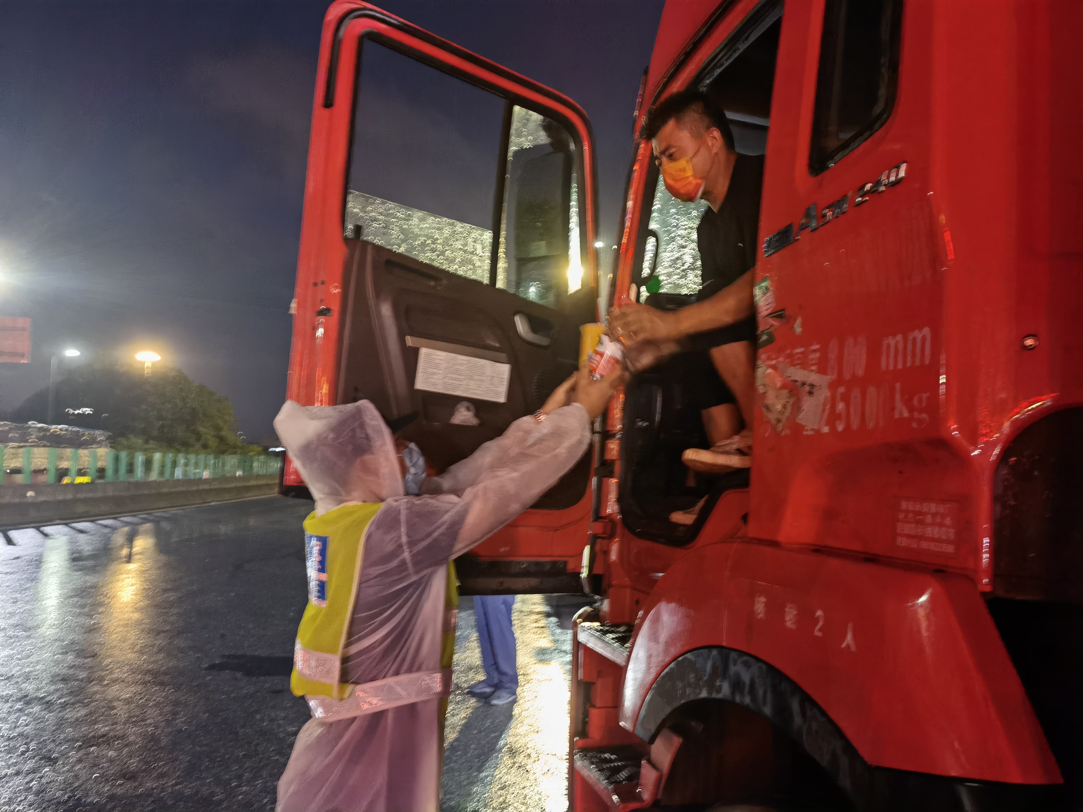 傍晚6时30分,一名滞留货车司机向执勤民警求助。他从外地过来,因健康码异常,无法在各服务区采购生活物资,随身携带的干粮已吃完。得知这一情况,刘彬立即为他泡好方便面,又拿了一罐八宝粥和矿泉水,冒雨送了过去,还耐心告知他健康码赋码转码的方式。货车司机非常感动,连连向刘彬道谢。