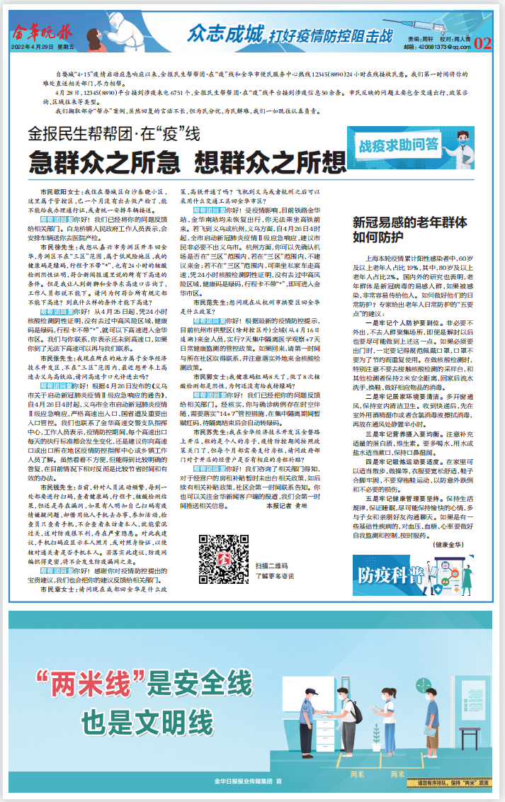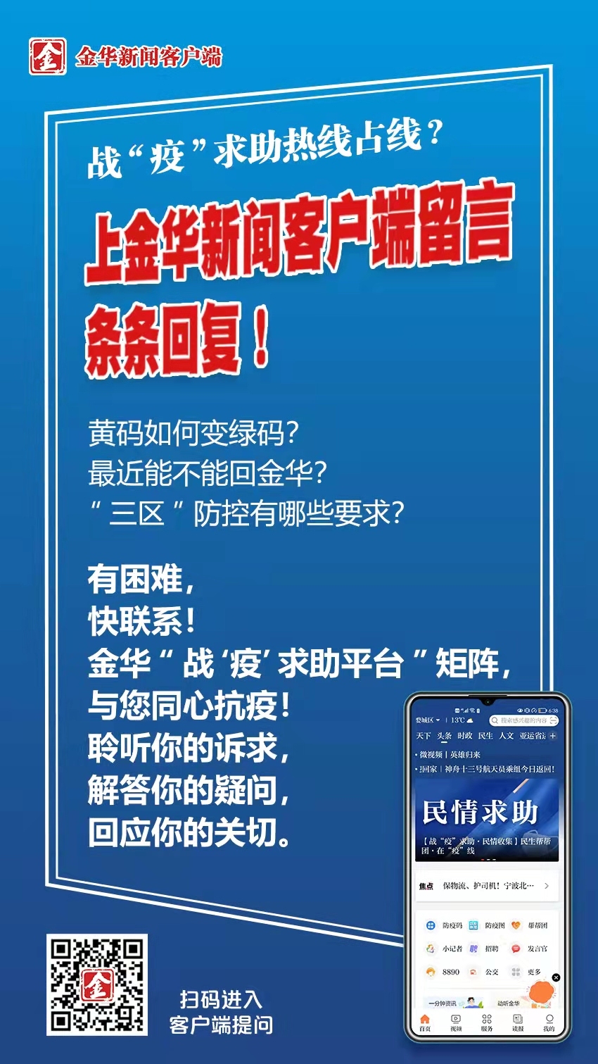自婺城“4·15”疫情启动应急响应以来,金报民生帮帮团·在“疫”线和金华市便民服务中心热线12345(8890)24小时在线接收民意。我们第一时间将你的难处直送相关部门,尽力相帮。