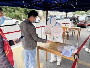 “抗击疫情,守护金华,有你有我。作为党员,我需要站出来,用实际行动助力疫情防控,为家乡的防疫工作贡献自己的一份力量。”4月16日,该行营业部员工陈超、黄倩在新狮街道玫瑰园社区协助开展全员核酸检测志愿活动,维持现场秩序。