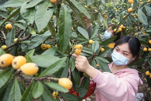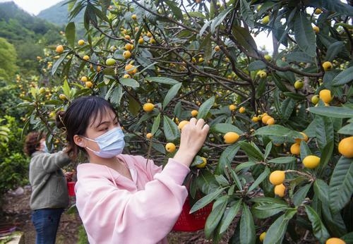 村民曹建平说,今年枇杷丰收,目前受疫情影响,进村购买和采摘的客人较少,村民为销路担忧,欢迎市民来村采摘游。