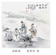 道长哈哈一笑,说:“不妨不妨,让我给你看看。”说着低头仔细看了年轻人的双眼,吩咐他:“别走开,待我采点草药,给你吃了,定然能好。”说完便上山拔了几株药草,就近到泉水里洗干净,摘下草根放口中嚼烂,用手搓成药丸,又用葫芦舀了泉水,走到年轻人面前,将药丸和葫芦塞进年轻人手中:“后生家,你把药丸用水吞了,不一刻便能重见光明。年轻人点了点头,问道:“请问先生高姓大名,现居何处,若治好我的眼疾,日后定当报答。”这道长又哈哈一笑,说:“你要问我的名字嘛,赤手空拳一道长,松间曾牧石为羊,初列仙班游四海,平日为人消病殃。”说完又道:“我曾在附近山上落脚,不过,现在已是身无定处,你也不一定找得到我了。"