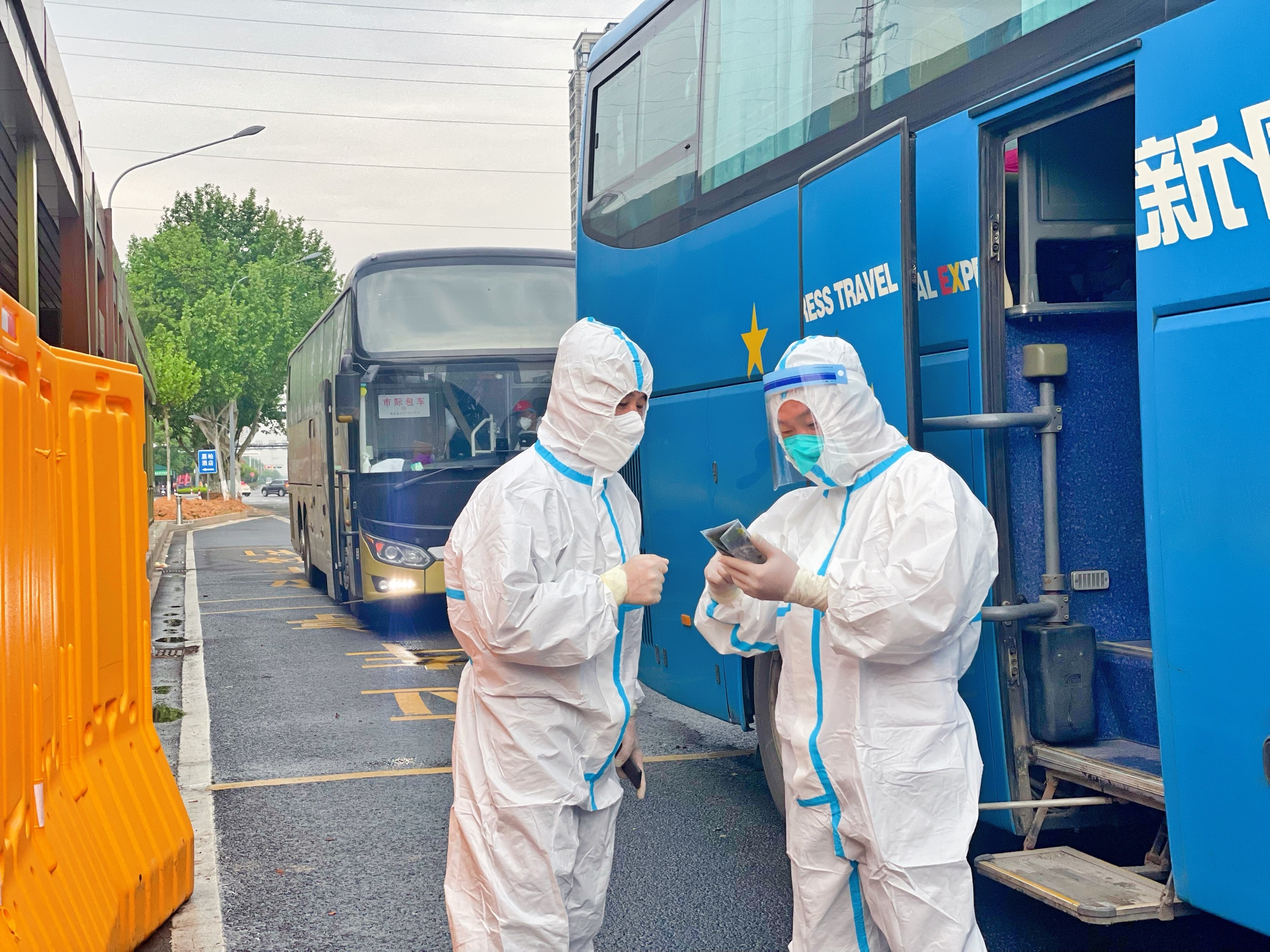 从准备物资到人车出动,从清点人员到转运返回,每个环节、每次转运、每次休整都严格执行防护规范,防止交叉感染,保障队伍内部安全,确保‘车在位、人待命’。每次转运,我们还需要进行全员信息核对,待全部人员上车后,再统一由交警带队出发,让大家都能安全抵达市区外的隔离点。