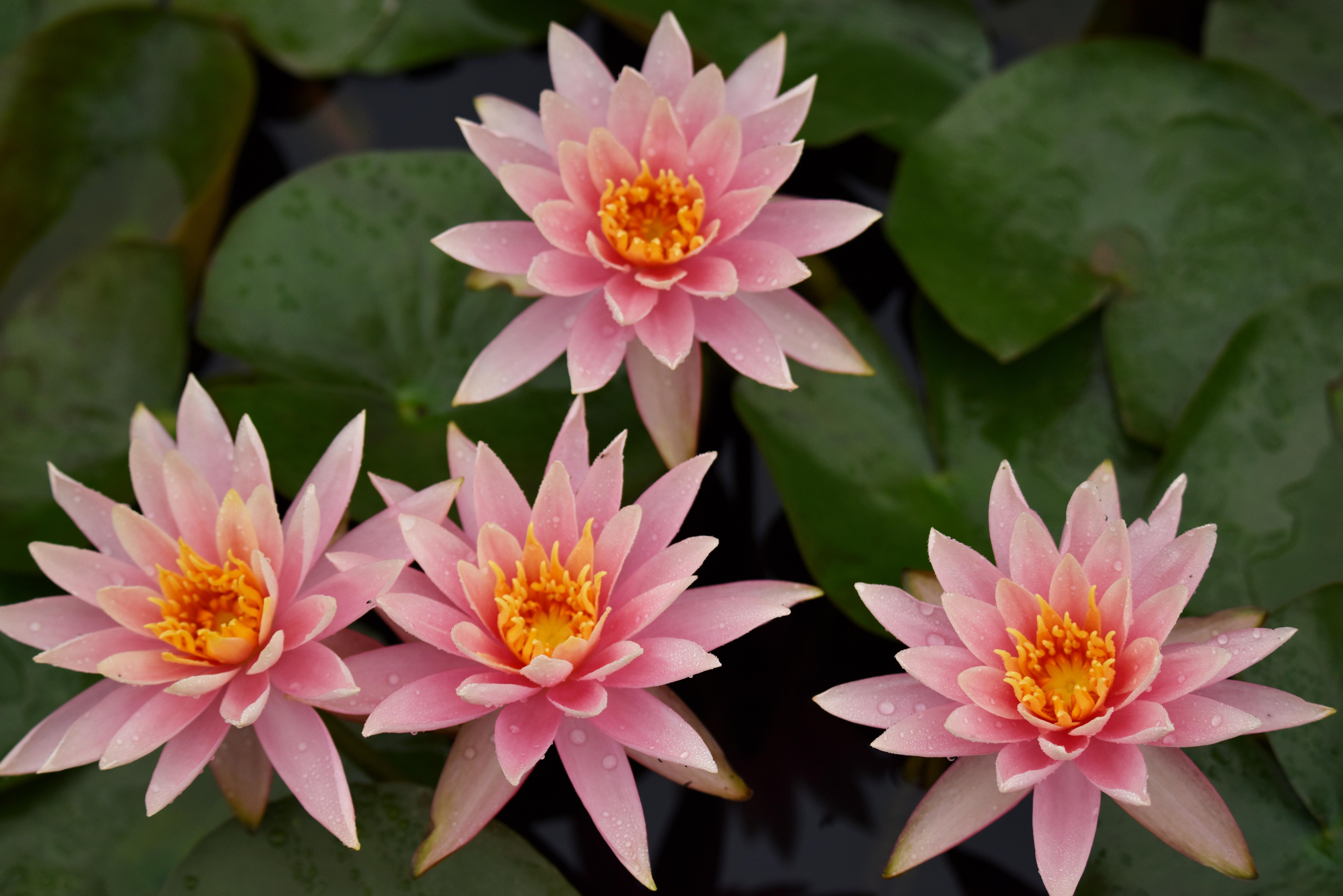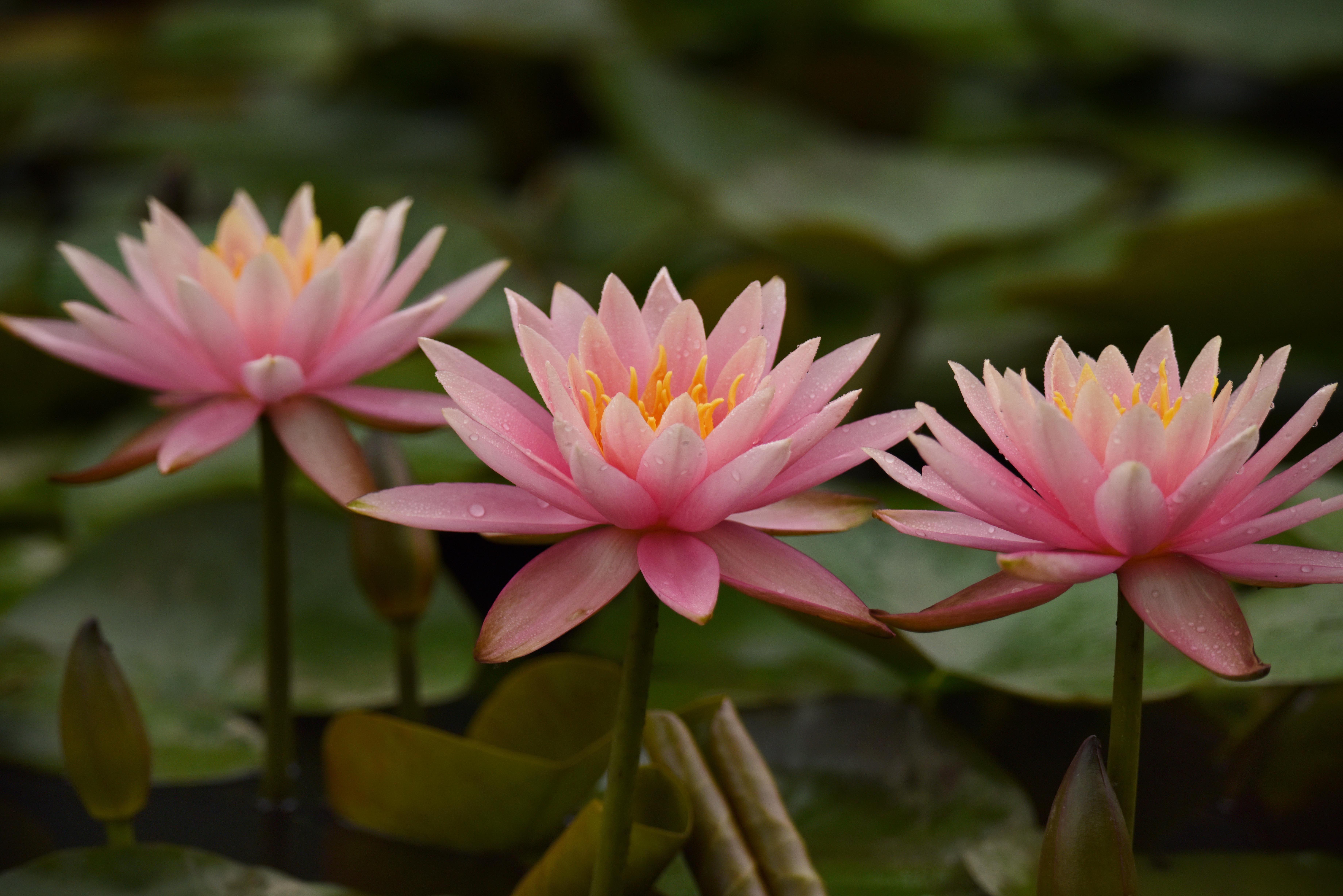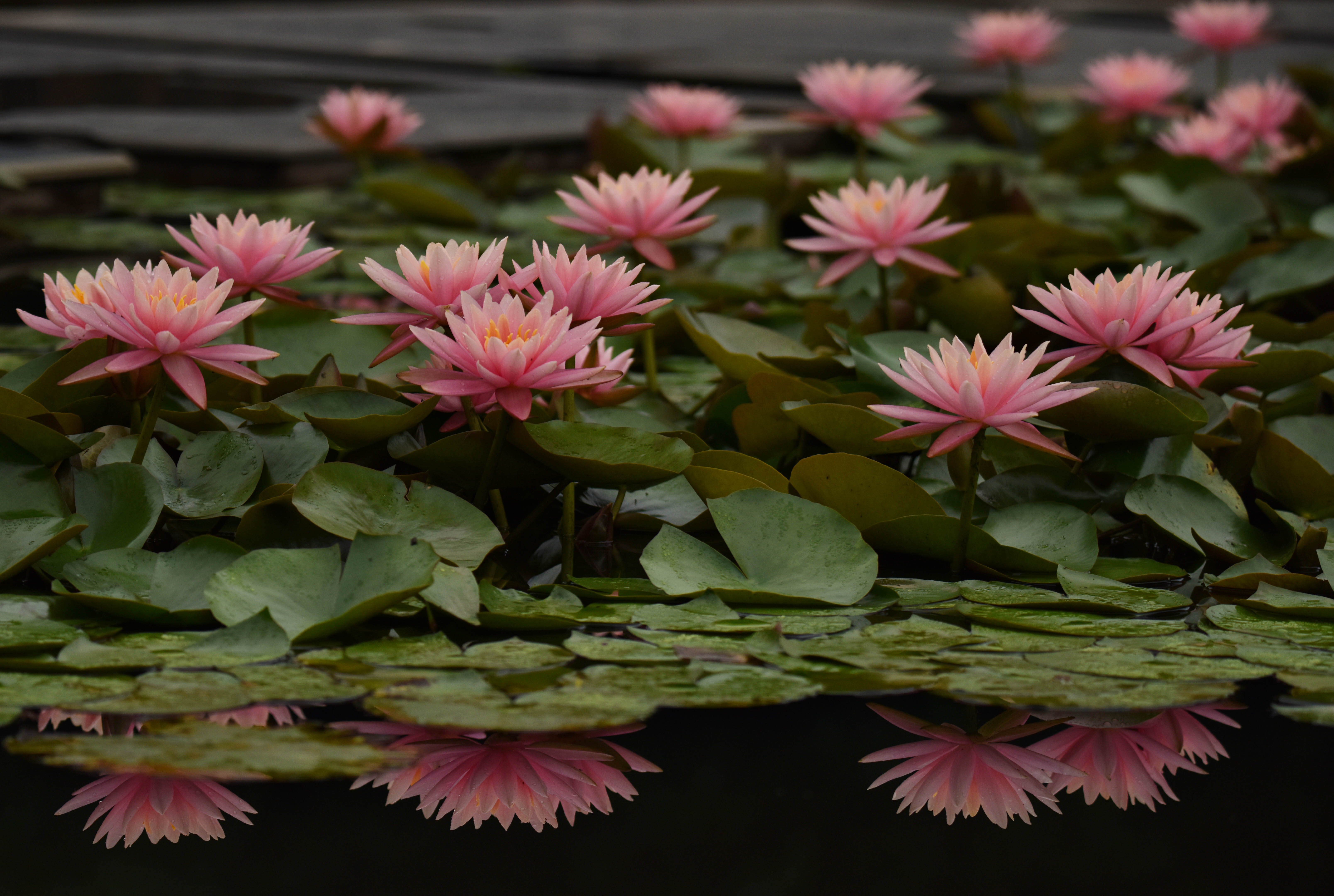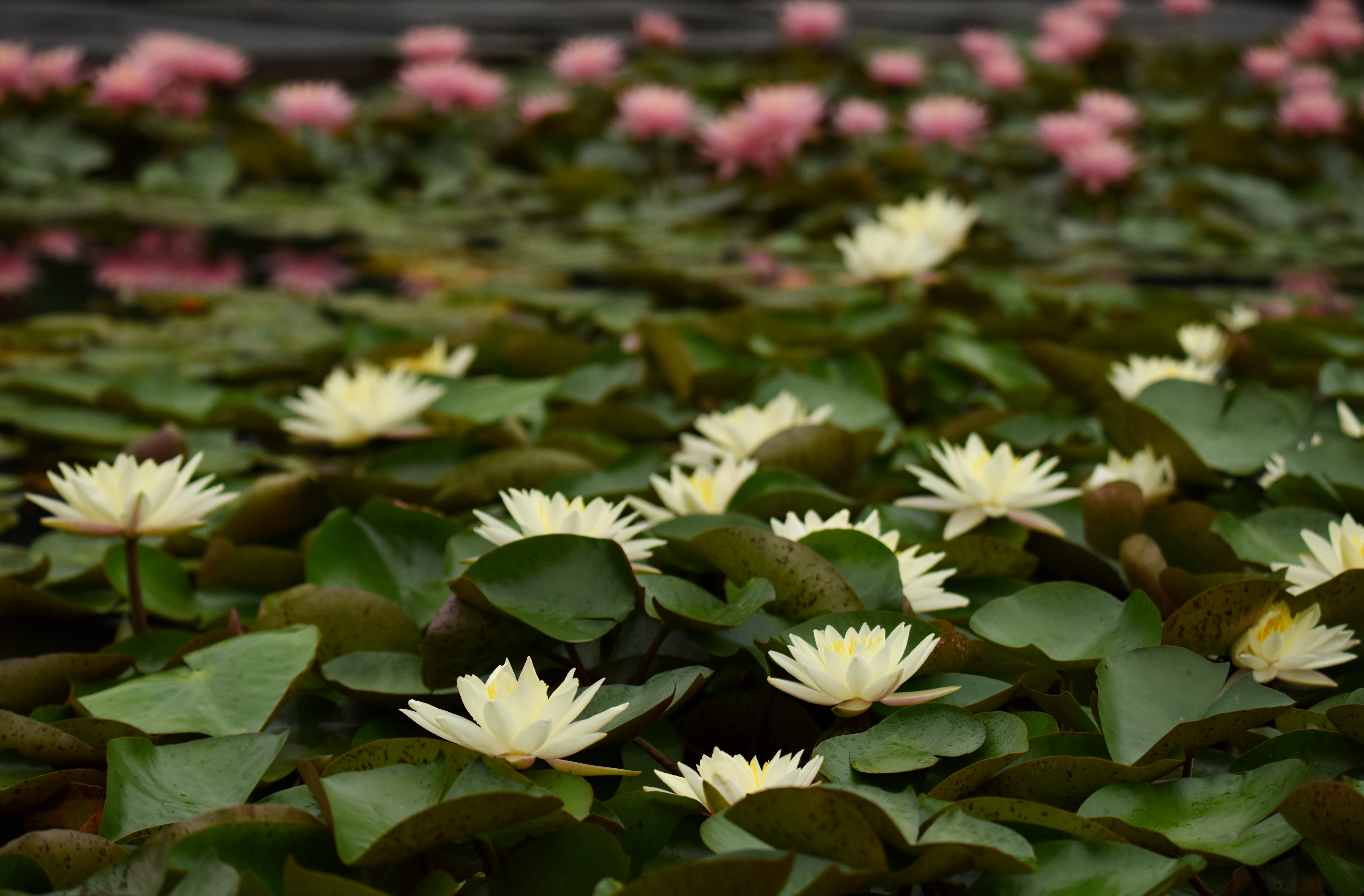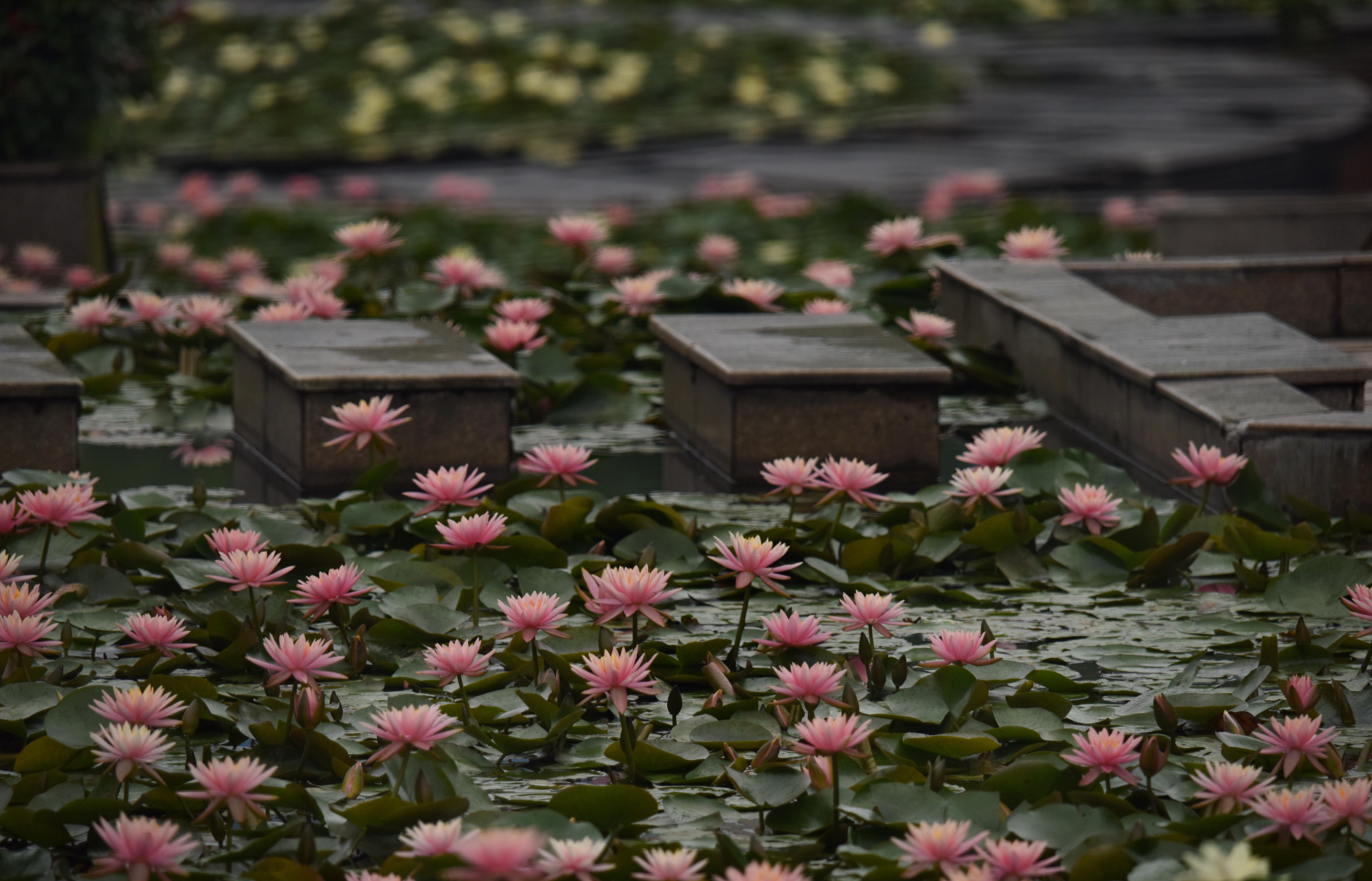 5月11日,武义县城区梅郎山公园层层叠叠的水池里,粉红、深红、米黄、雪白的各色睡莲竞相绽放,成了公园一道美景。