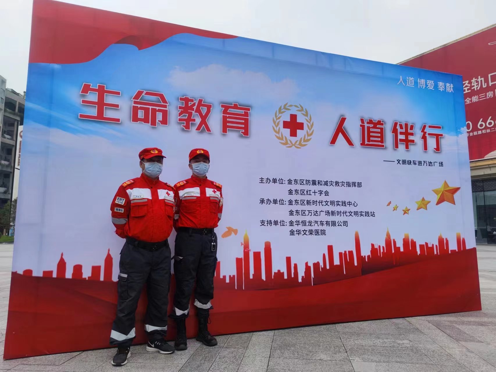 5月14日下午,金东区红十字会联合区防震和减灾救灾指挥部等多部门开展“生命教育,人道伴行”主题宣传活动。