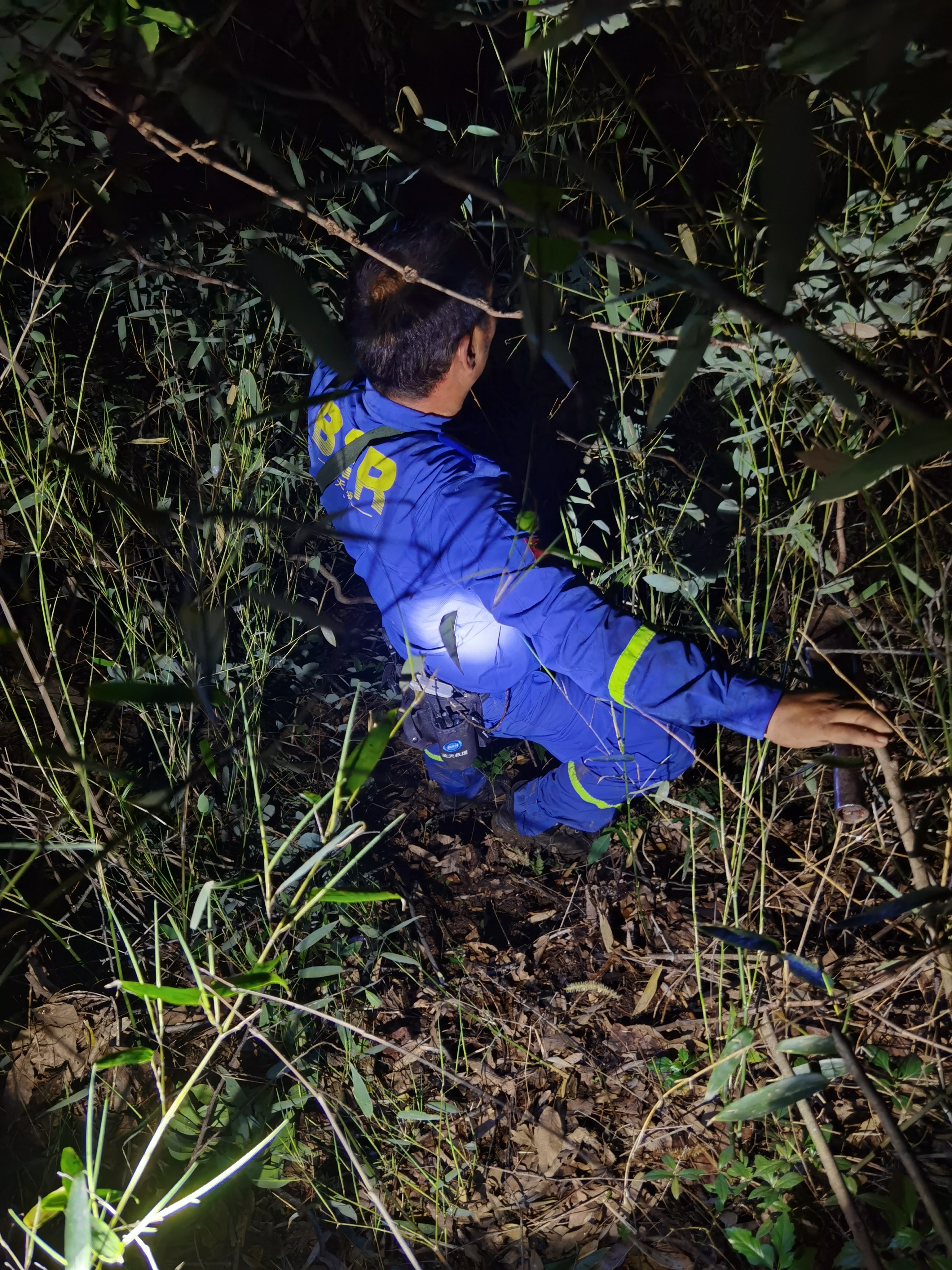 随后,许华阳带队与家属汇合。当时,巍山镇派出所已使用无人机进行寻找。天色渐黑,山上树高林密,许华阳决定和队员邱文斌、吴向前以及四位村民进山寻找。