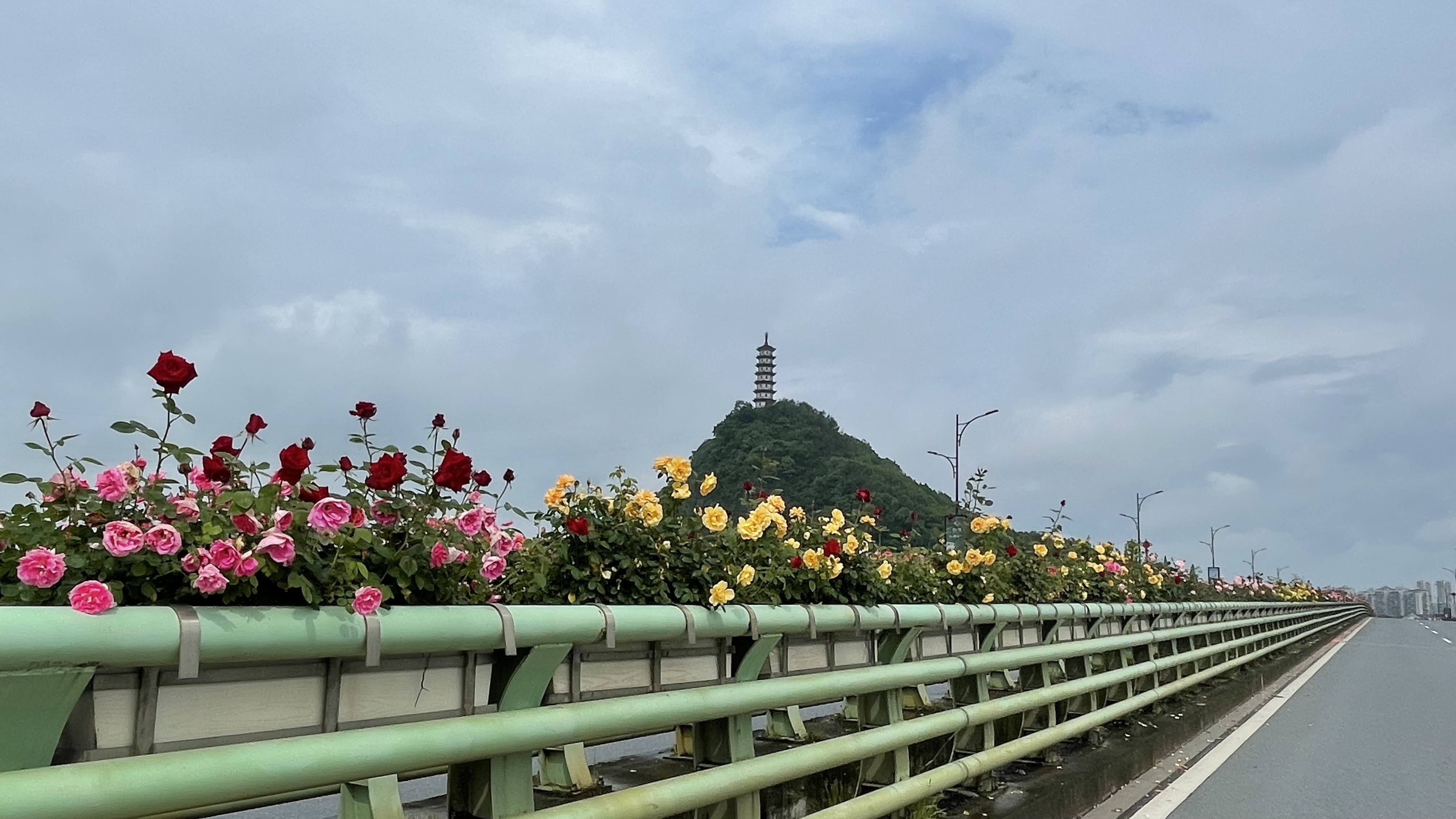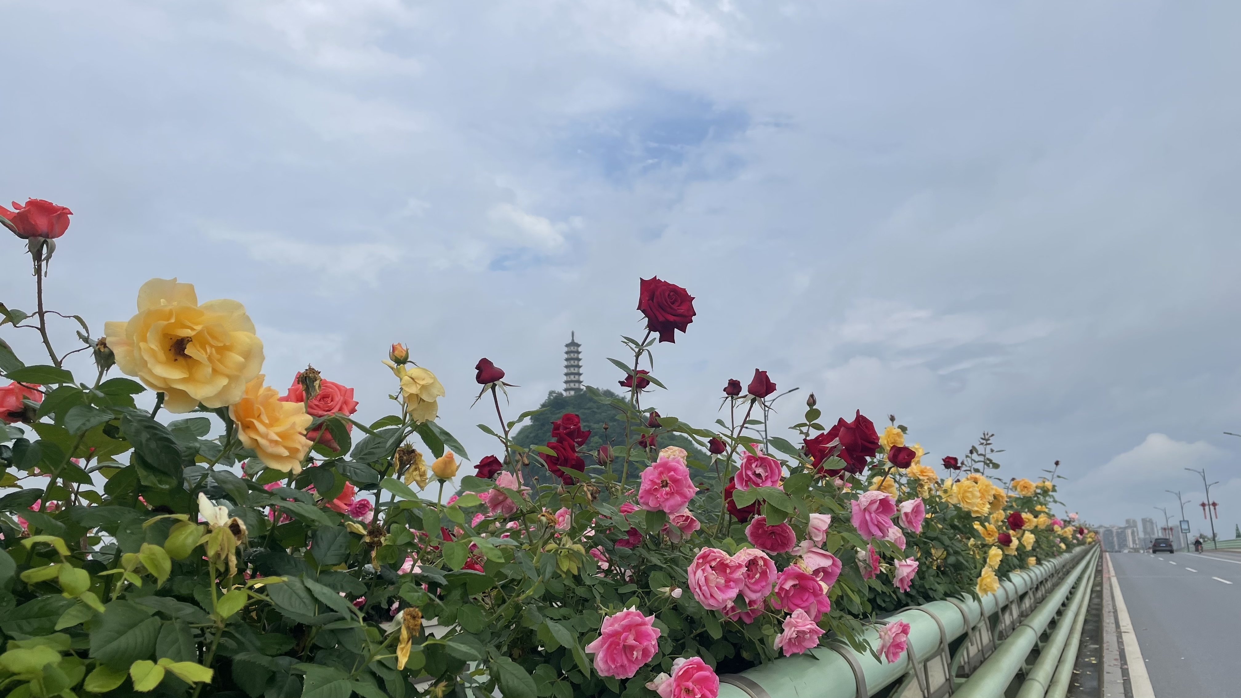 兰城五月,月季盛开。最近,兰溪市民惊喜地发现,在市区横山大桥、金角大桥等地,姹紫嫣红的月季就像是一条“空中花廊”,点亮了过路人们的心情。
