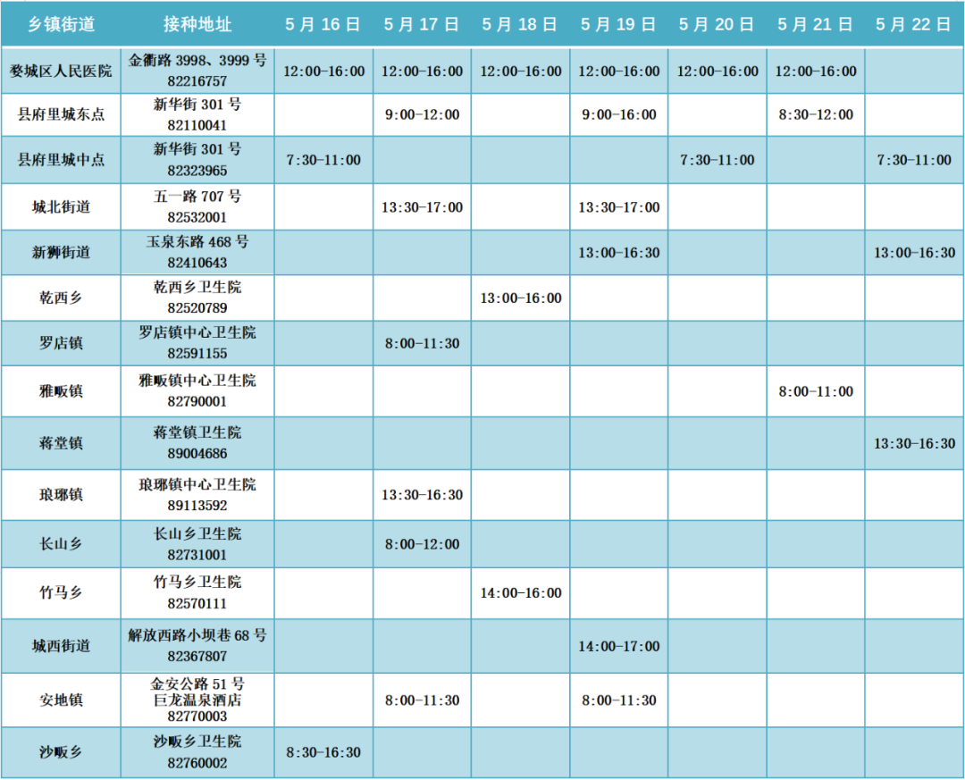 5月16日-5月22日婺城区新冠疫苗接种点信息