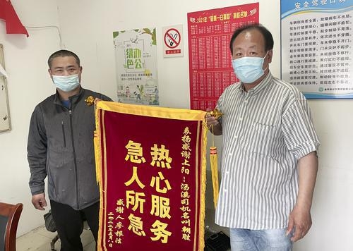 近日,市民廖根法手持写有“热心服务 急人所急”的锦旗,来到市区公交南站,感谢驾驶员蔡朝胜的拾金不昧行为。据了解,廖根法乘坐市区614路公交车时,不慎将随身携带的手提包遗忘在车上,内有现金、钻戒、银行卡等物品。当公交车到达婺城区塔石乡上阳村终点站后,蔡朝胜发现座位上有手提包,并进行妥善保管。