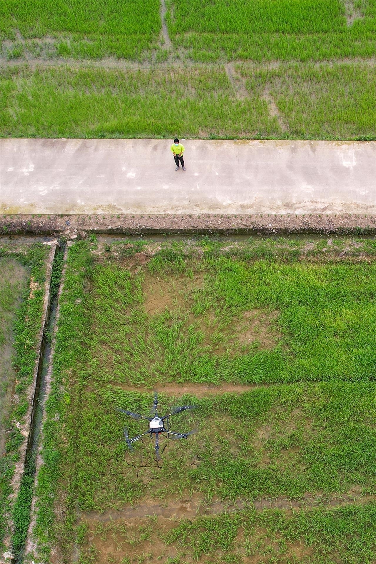 作为新一代信息技术产业和高端装备制造产业的结合体,无人机已经融入到了人们的生产生活中。农用无人机撒药均匀,防治效率高、喷药效果好,助力稻田丰收。
