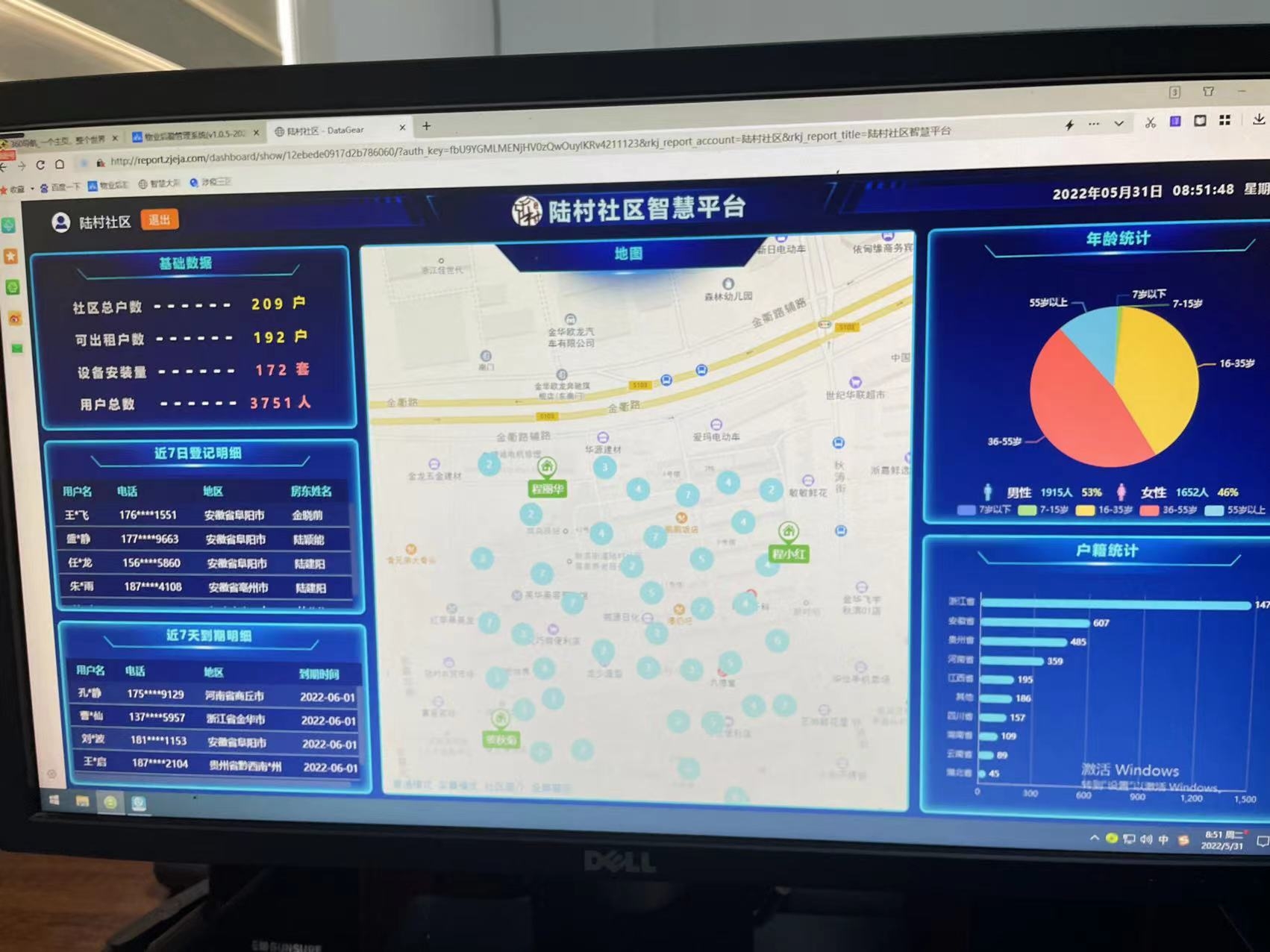 “原先由开发区统一安装了一批门禁系统,取得了一定的管理成效,我们就想能不能在原来门禁的系统上进行智能化升级。”在社区干部的电脑上,有一个社区智慧平台,社区电子地图、人口基础数据、近7日登记明细、近7日到期明细、人口年龄统计、户籍统计等六大块内容清晰可查。