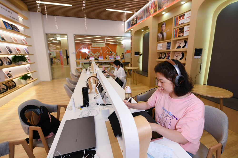6月2日,在浙江省杭州市余杭区葛巷未来社区文化家园,居民在有声图书馆内学习。新华社记者 翁忻旸 摄