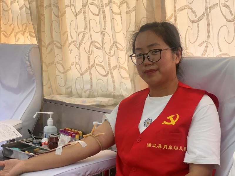 日前,浦江县月泉幼儿园工会组织党团员教师进行无偿献血活动。