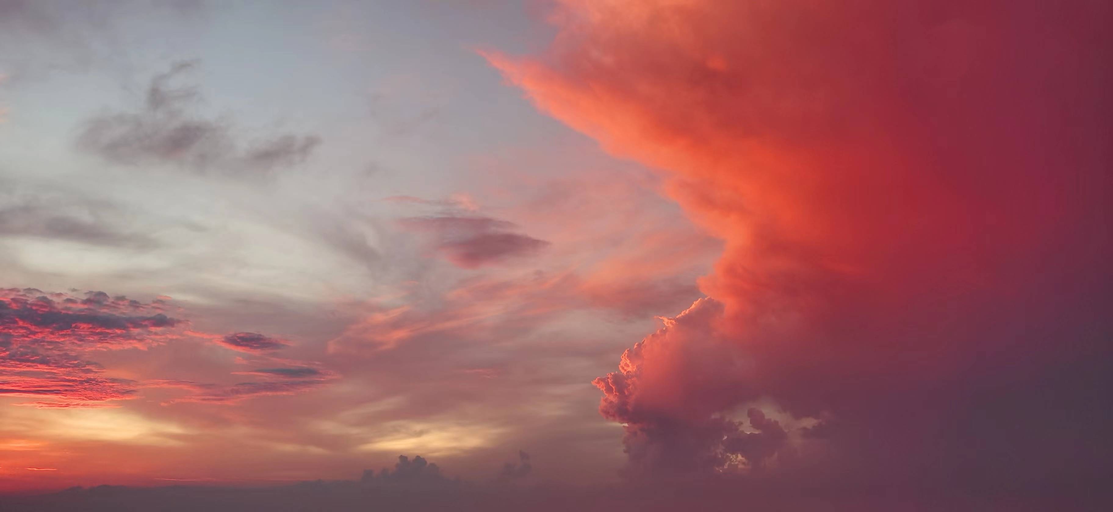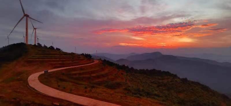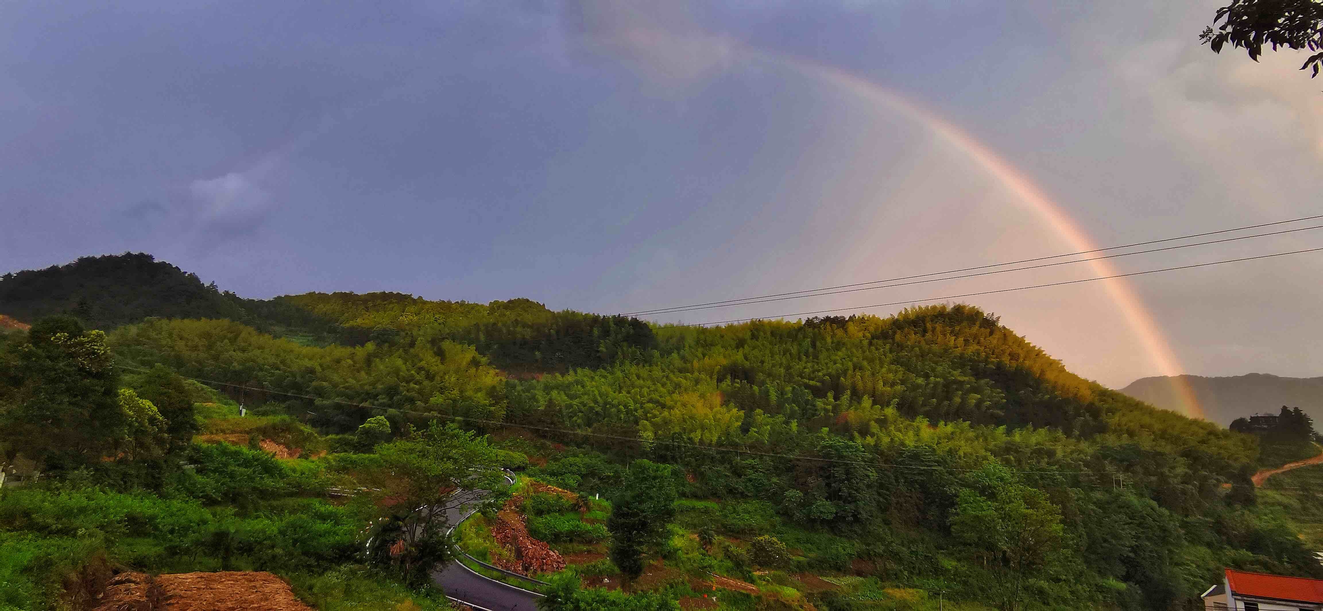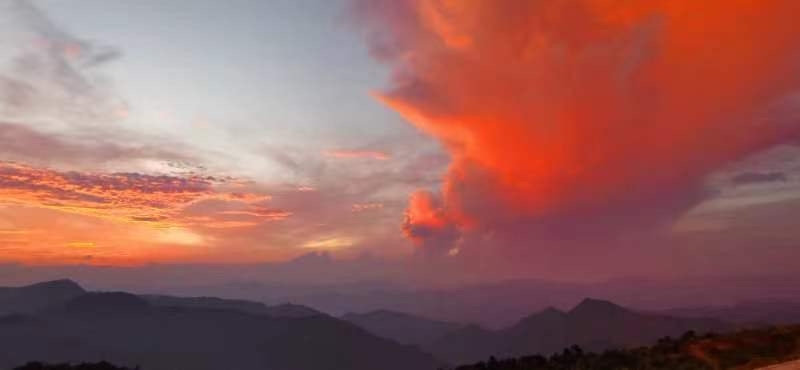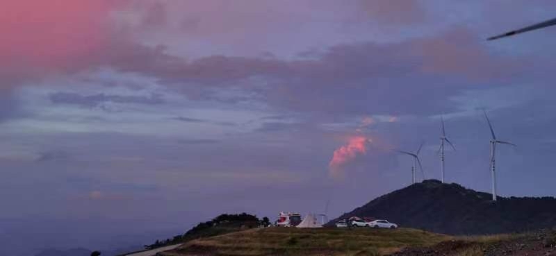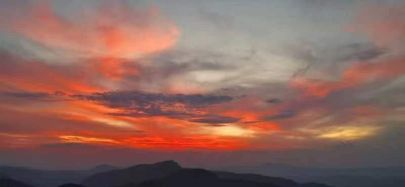 风雨过后,傍晚的青梅尖有红霞飘舞