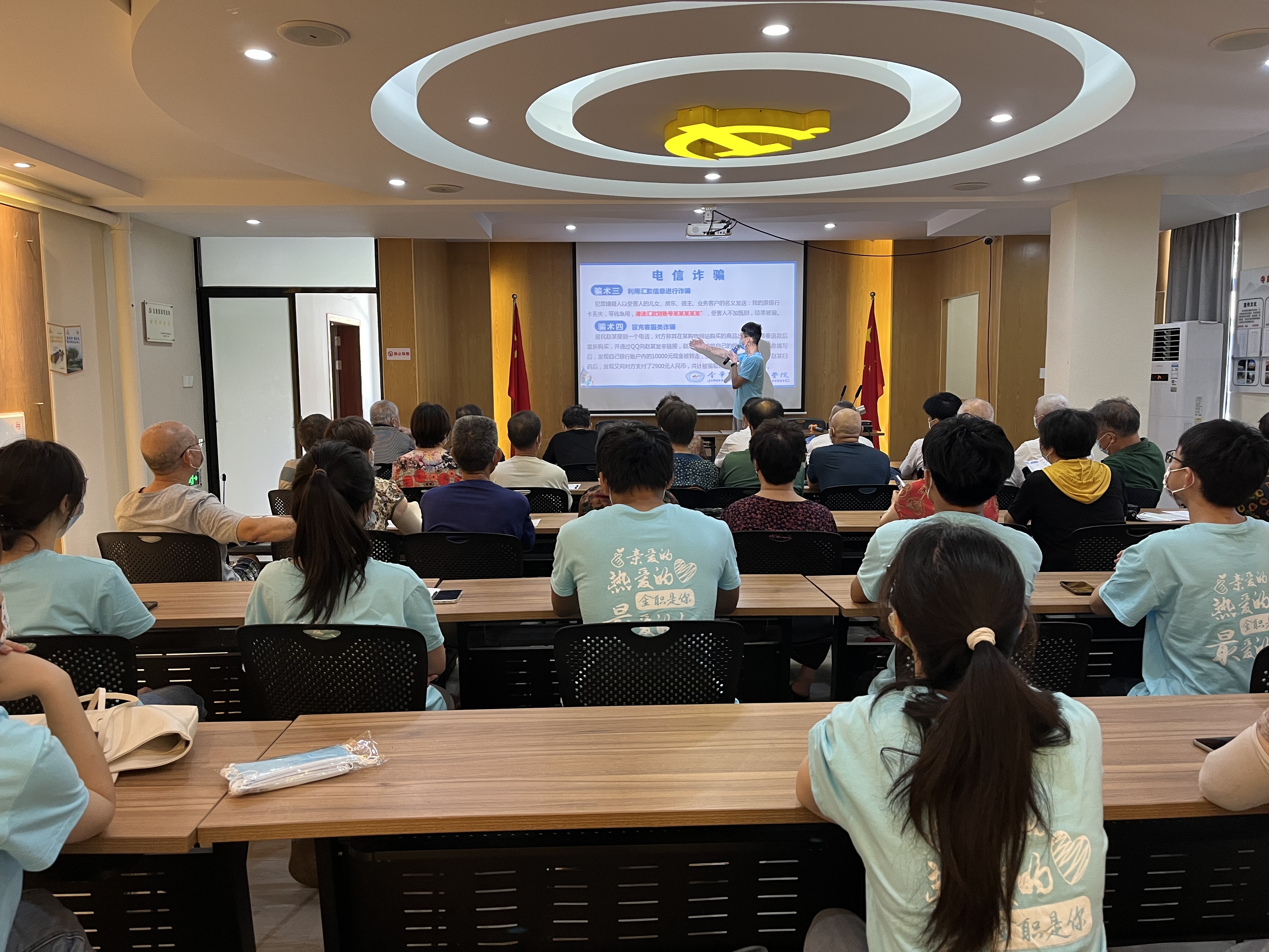 7月4日,金华职业技术学院“青眼看金华”暑期社会实践队在西关街道寺后皇社区开展“预防电信诈骗 全民防诈骗 人人反诈”主题宣讲活动,10余名青年大学生志愿者、社区各个网格的党员志愿者、微网格长、居民代表等50余人参加活动。