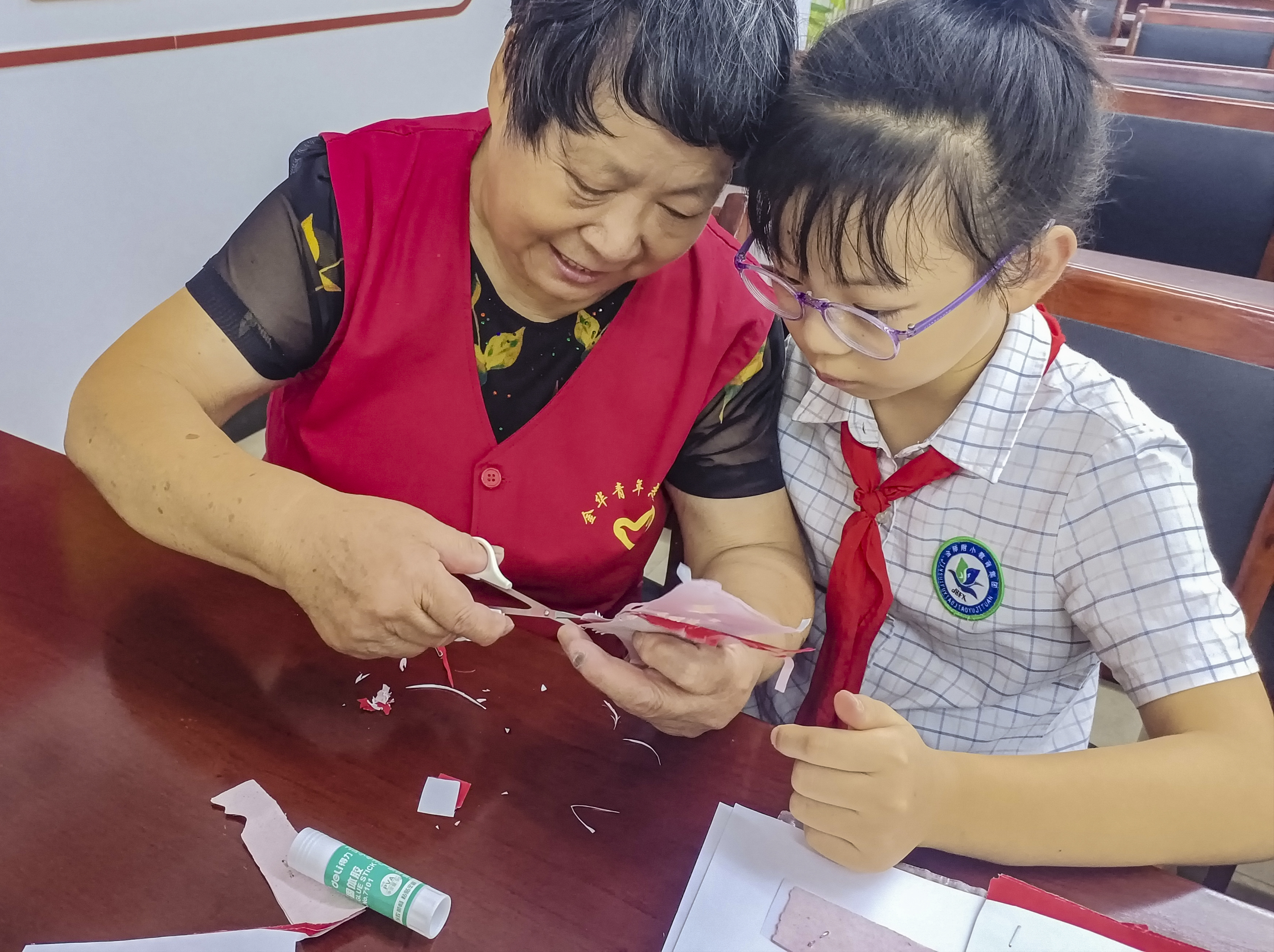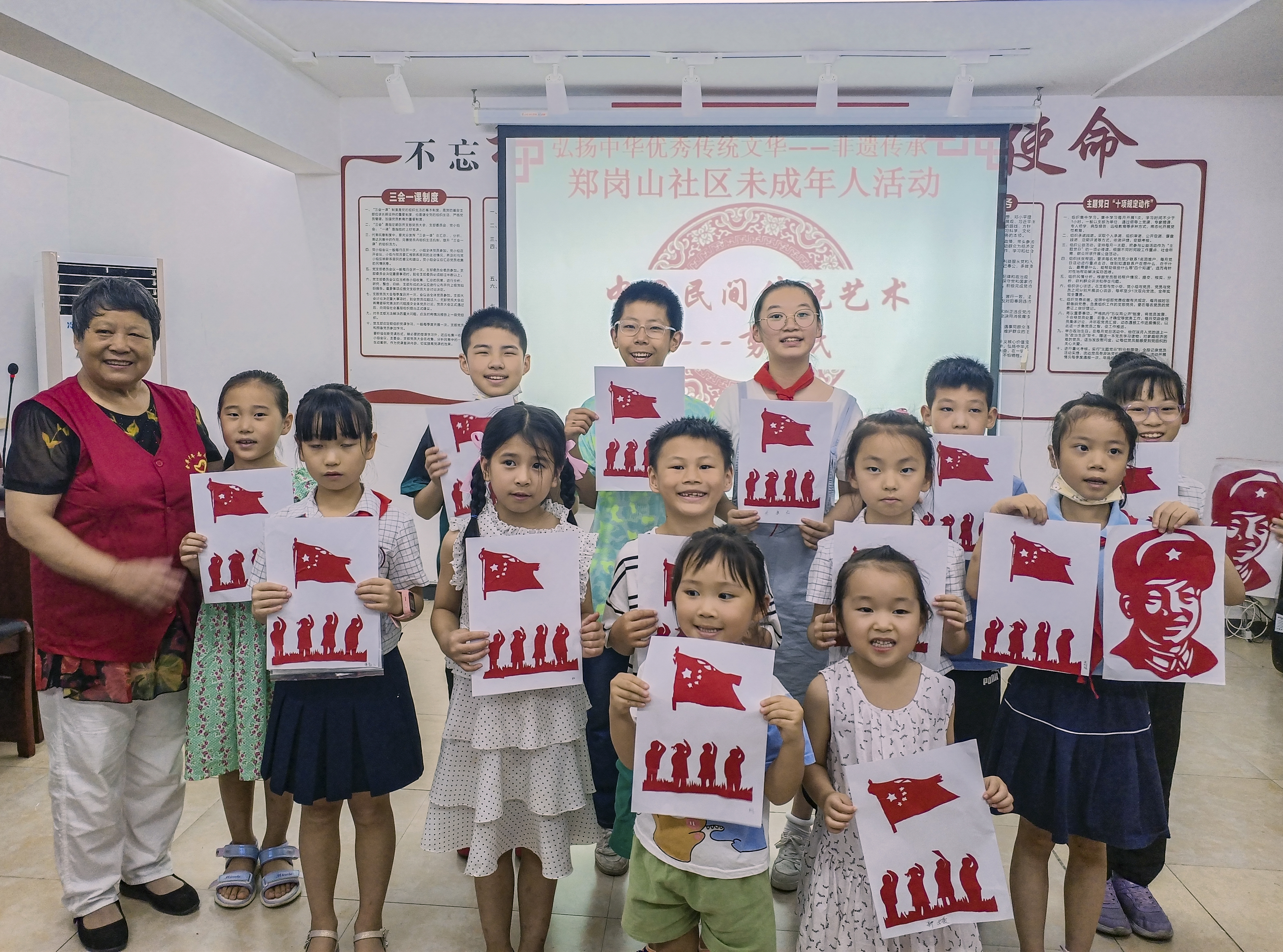 昨天,婺城区城北街道郑岗山社区党委开展主题为“弘扬中华优秀文化传统——非遗传承 红色剪纸颂党史”活动,组织辖区内未成年人参加。