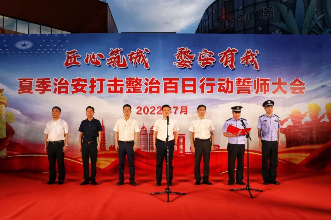 7月6日晚,婺城区“匠心筑城·婺安有我”夏季治安打击整治“百日行动”誓师大会在婺城新城区万泰广场举行,进一步检验婺城公安队伍精神风貌和能力作风,号召全区上下共同守护平安婺城,为建设高能级现代化都市核心区作出新贡献,以优异成绩迎接党的二十大胜利召开。