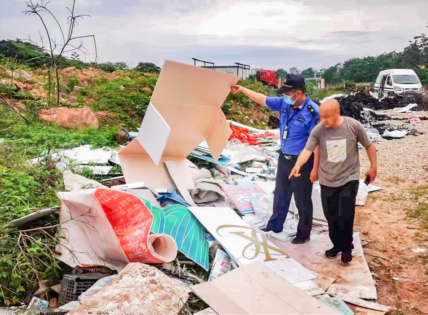 在巡查中,执法人员发现,迎宾大道东侧在建工地边上有大量废品、罗店镇尖峰路麻车路口对面的地块内有多处违法倾倒的生活垃圾、同创路与创业路西北侧有占地面积约为3平方米的垃圾堆。现场调查取证后,执法人员依据《中华人民共和国固体废物污染环境防治法》《浙江省生活垃圾管理条例》《城市建筑垃圾管理规定》等法规条例,依法对乱倒垃圾当事人作出行政处罚,并要求将偷倒的垃圾清理干净。