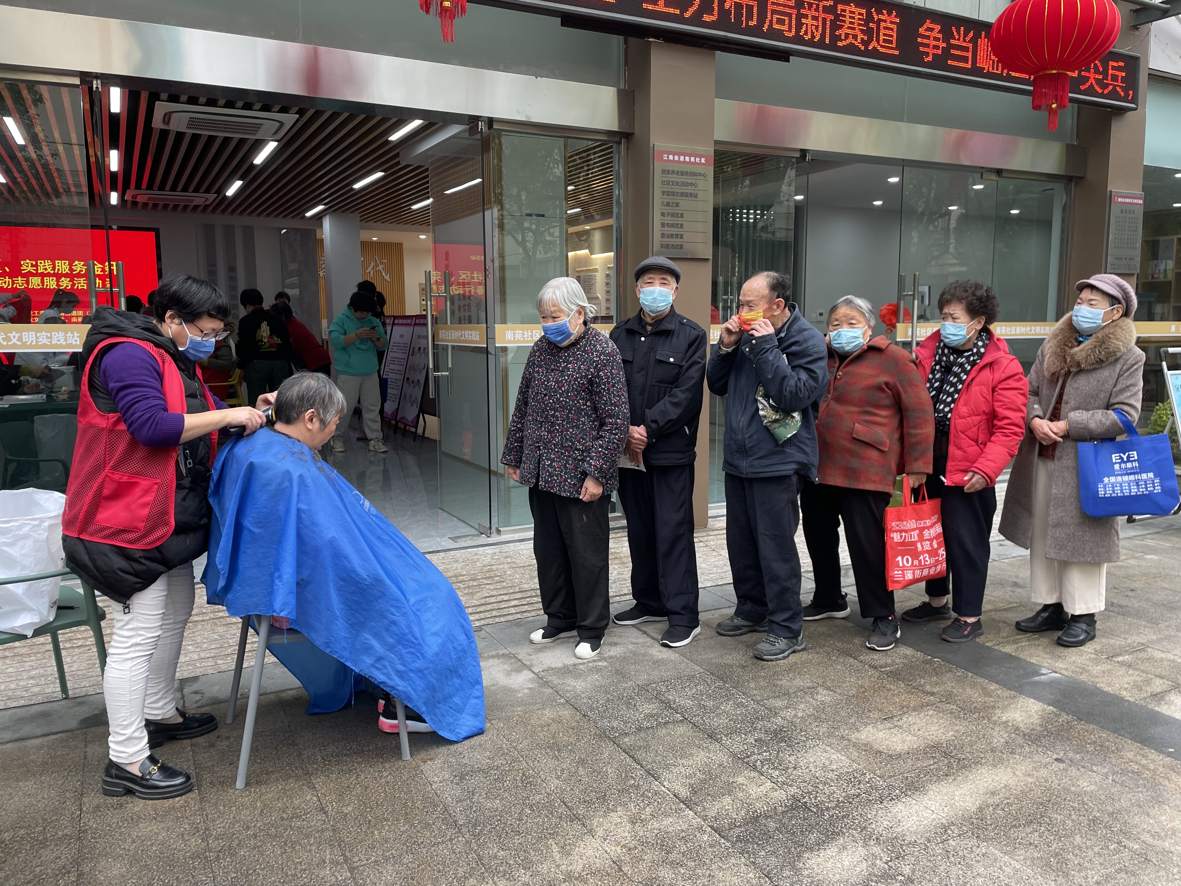 “二月二剃龙头,一年都有精神头。”暖心剃发服务点上非常热闹,理发师正免费为居民梳洗、理发,居民们借着好寓意都前来理发;蓝芽口腔的医护人员细心为居民检查口腔健康,给服务对象提供多种优惠矫牙套餐;金华爱尔医院为居民检查眼部视力,对常见问题提出进一步就诊意见;南苑义诊团队为老年人量血压、听心肺,详细询问每位居民的身体状况、既往病史,耐心细致地解答群众提出的问题,并根据检查结果给予群众相应的治疗方案......