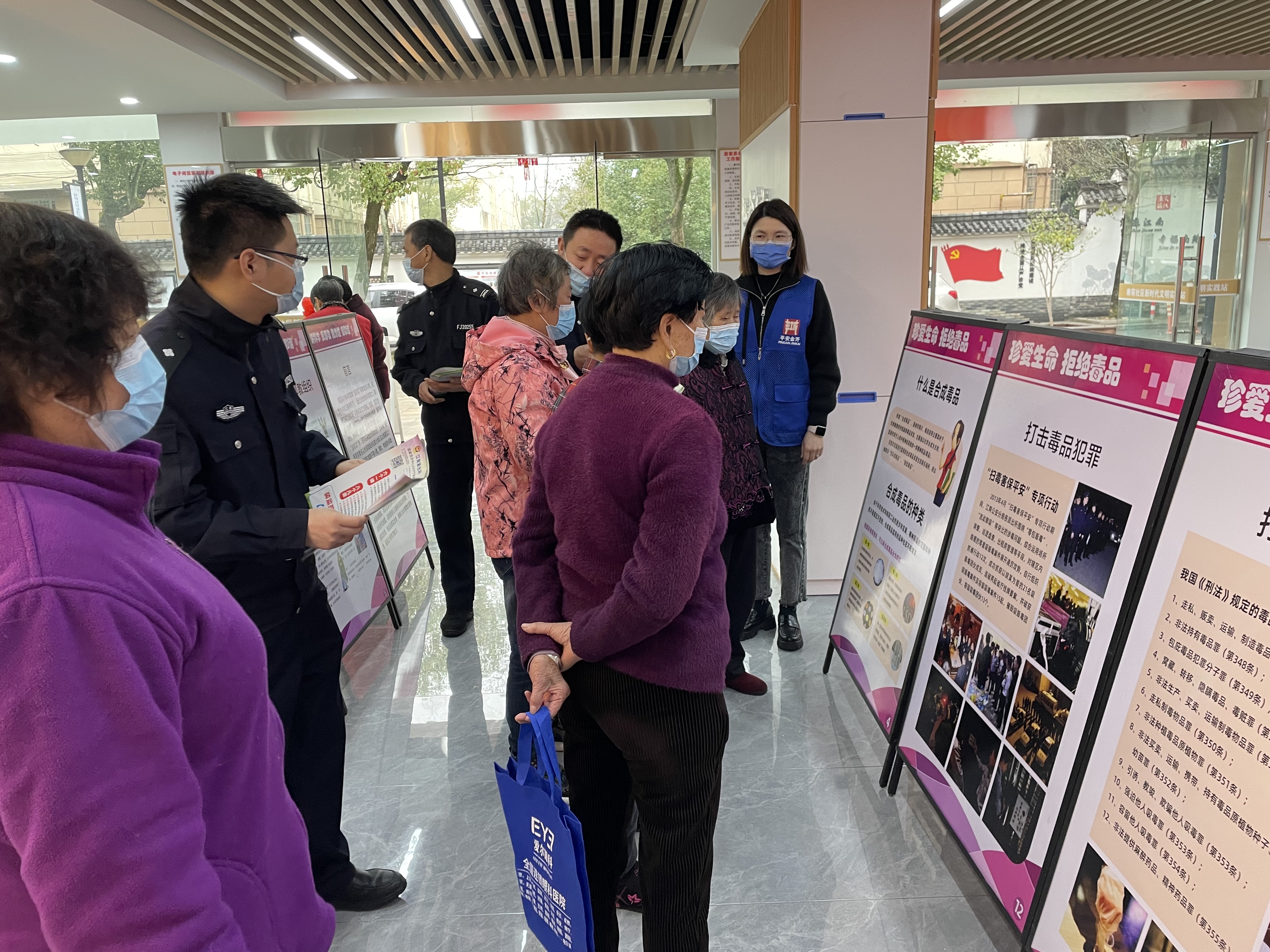 借此“学雷锋”活动,江南派出所和社区网格员也针对反诈骗、反邪教、禁毒内容开展集中宣传,大家围着展板驻足观看。民警现场为大家讲解近期骗子惯用诈骗伎俩和邪教、毒品危害,切实提高现场参加活动人群反诈、反邪、禁毒意识。活动现场共发放宣传袋100多份,发放各类健康手册单页200余份,咨询、义诊服务达150余人。