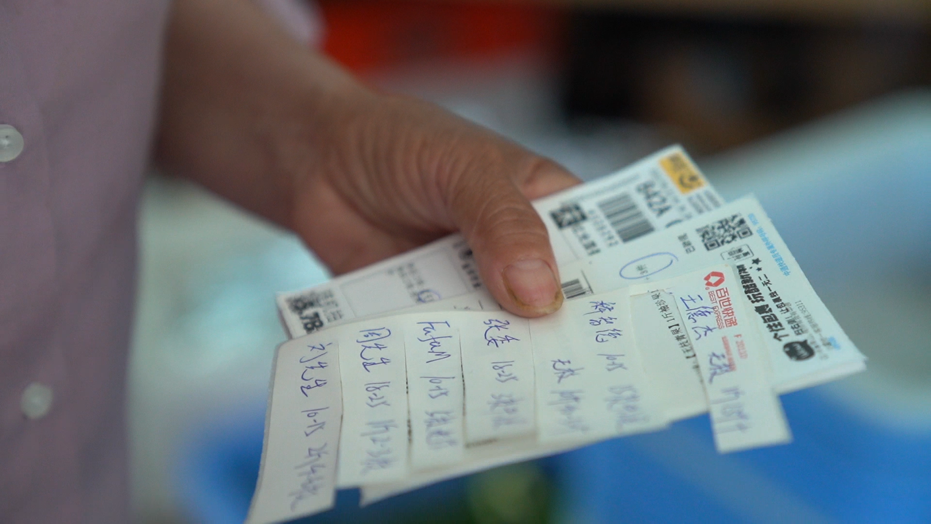 不巧,我们到的时候,她去杭州了。她的父母正按照她留下的发货单让请来的三位阿姨一一打包:“周先生,1斤,2~3枝”“Fafan,5枝迷你”“释先生,无枝10斤40~50个”……