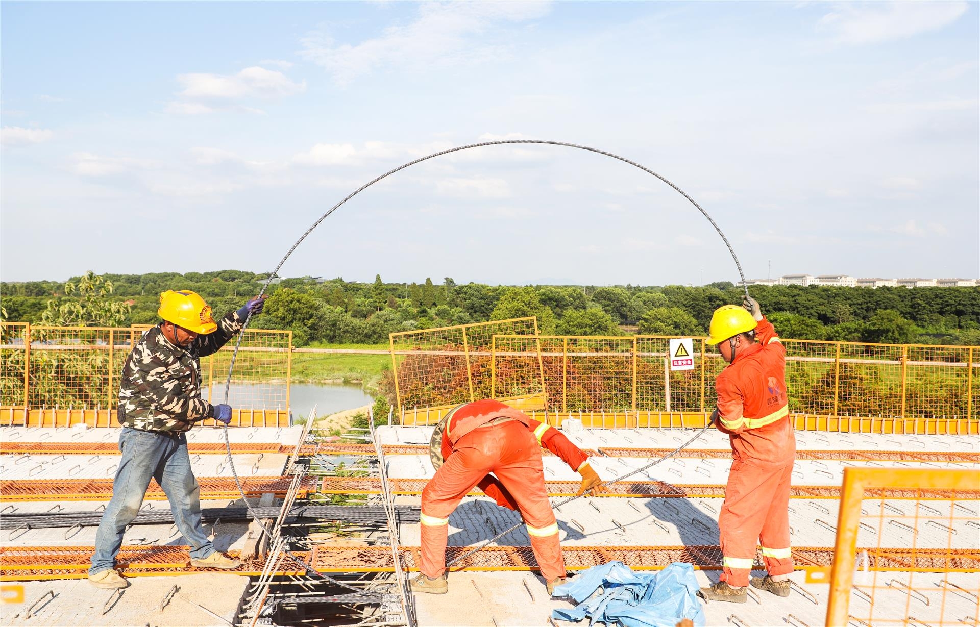 班组长陈益良说,目前该标段共有50多名工人,为了保证工程进度,大家都坚守在岗。为了应对近期的高温天气,他们采取弹性工作时间,尽量避开高温时段施工,并为工人准备防暑药品、绿豆汤等,在炎热的夏天为他们送去关怀和清凉。