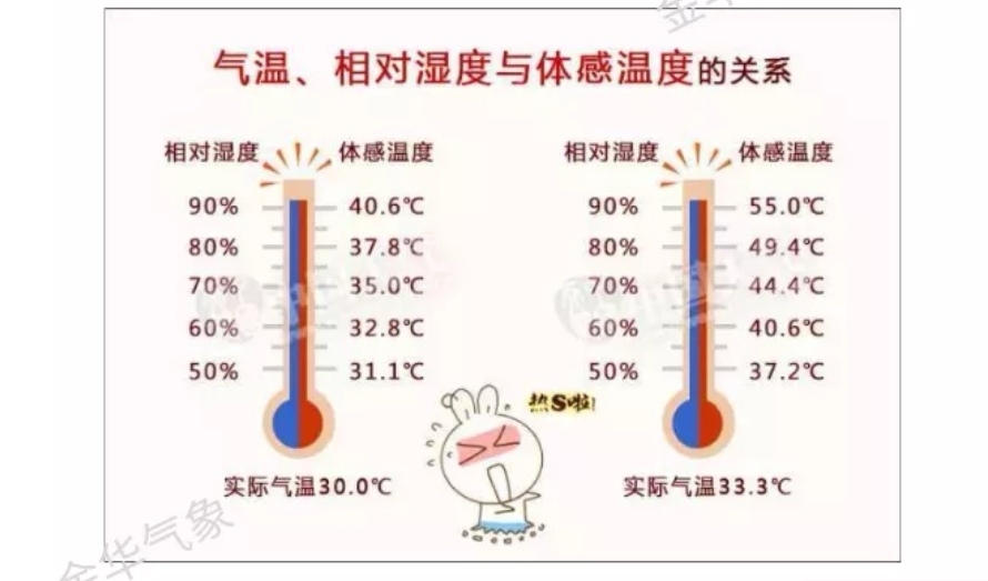 至于体感问题,是指人对冷热的温度感觉,不能简单地理解为是人体的皮肤温度。在相同的气温条件下,人们会因为湿度、风速、太阳辐射(或日射)、下垫面、着装颜色甚至心情等的不同而产生不同的冷暖感受。湿热气候条件下,汗液难以蒸发带走身体的热,使得人体感到更热、不舒适。因此夏天感觉到闷热的时候,空调开启除湿模式,降低空气中的湿度,也能明显带来凉快的感觉。
