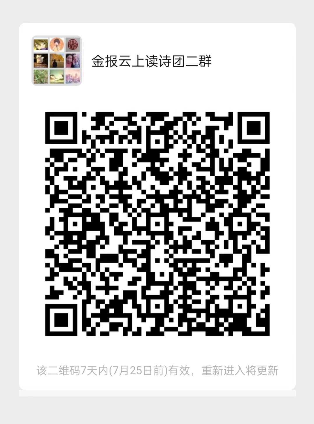 参与形式:读者朋友自行练习、自行拍摄读诗小视频(MP4格式)或音频(MP3格式),在截止时间前提交至“金报云上读诗团”微信群。读诗视频(音频),可以是普通话,也可以是八婺乃至全国各地方言。