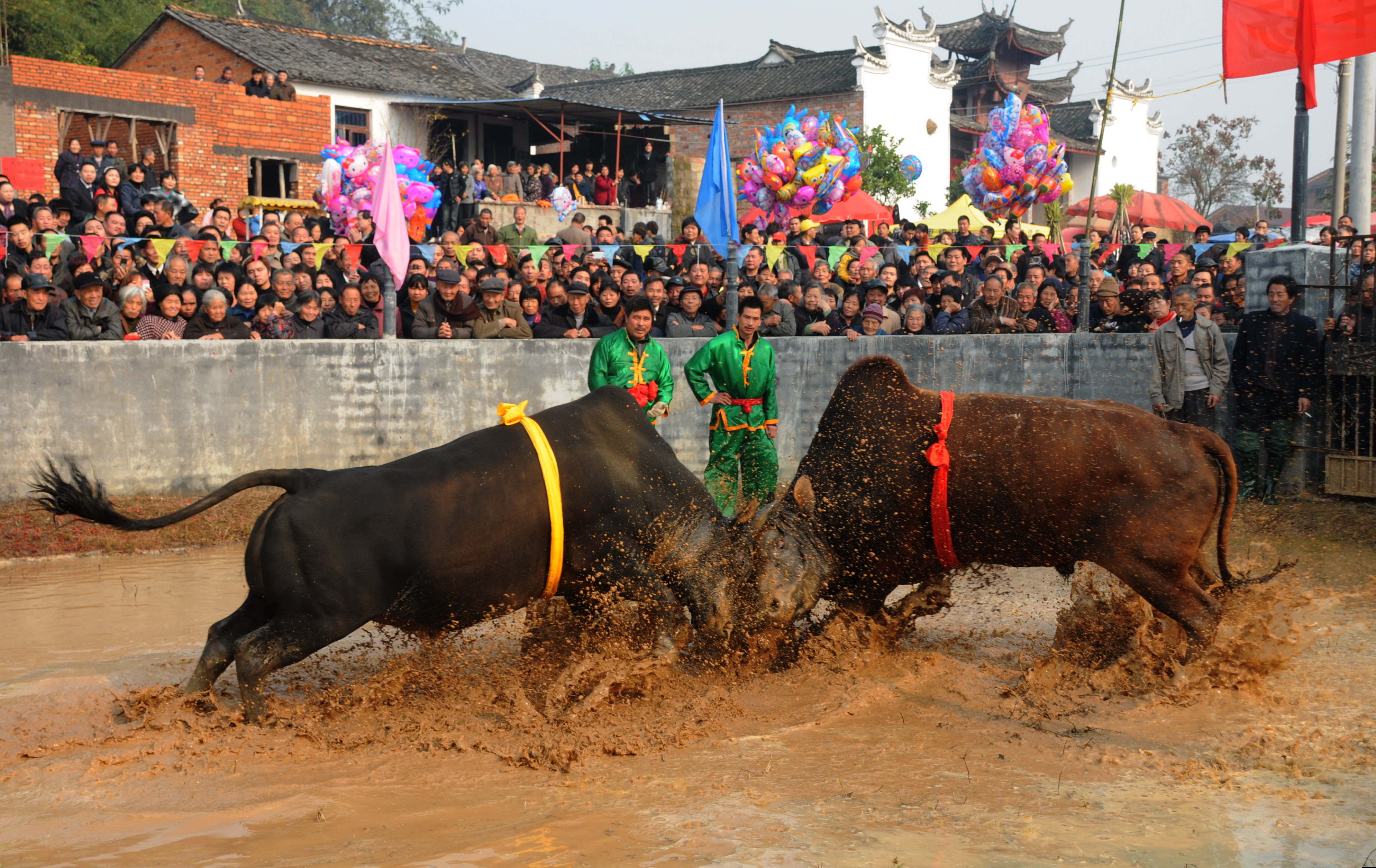 “进退变化若有知,腾跨牛背声唏唏。突然跃下猛抵顶,落头倒项相挎持。”金华斗牛好看,金东区蒲塘村人王廷扬在《斗牛诗》里就有描绘。王廷扬是清光绪年间的进士,而追溯起金华斗牛的历史,则还要远得多。