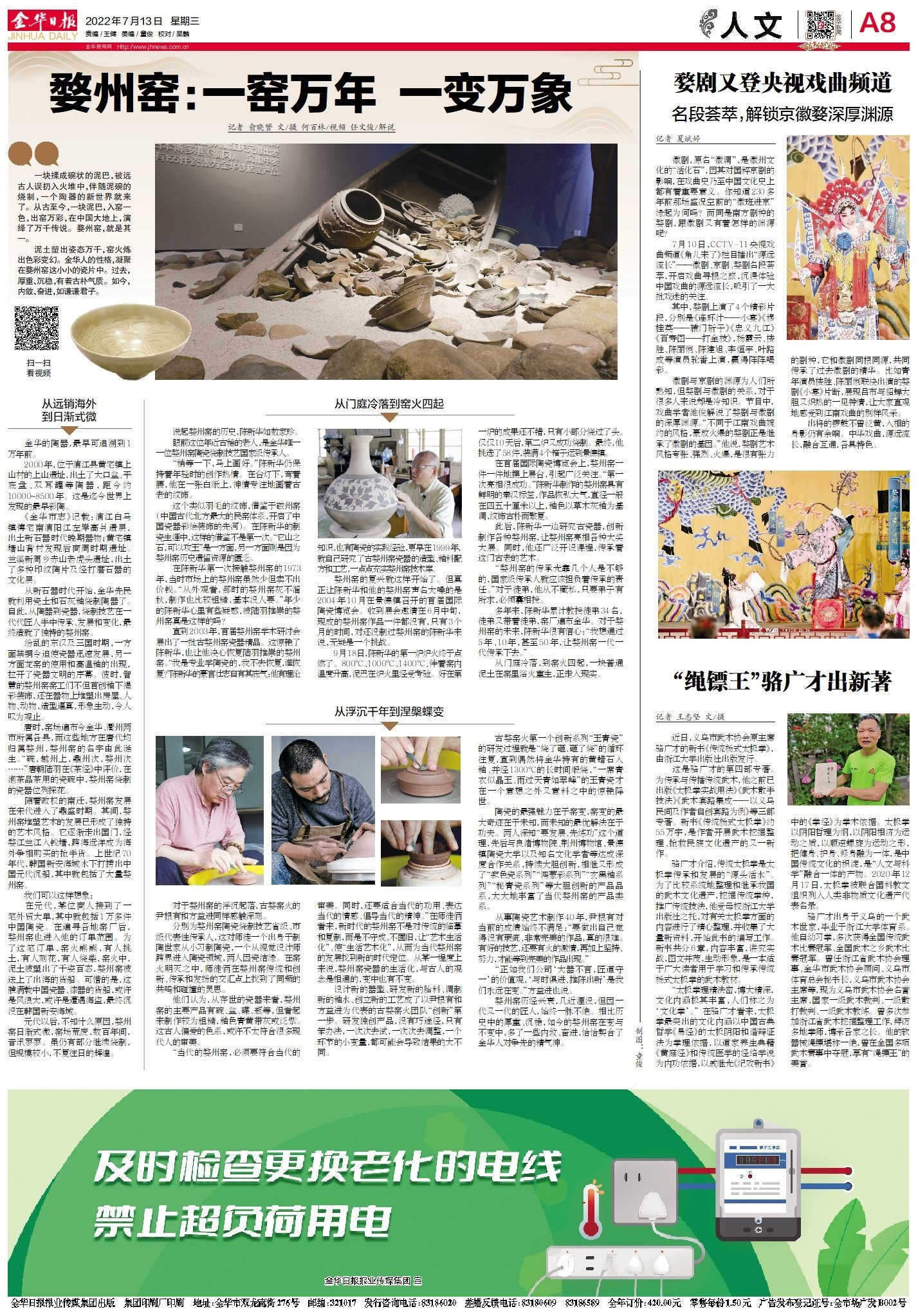 婺州窑历经兴衰,几近湮没,但因一代又一代的匠人,始终一脉不绝。相比历史中的厚重、沉稳,如今的婺州窑在变与不变中,多了一些内敛、奋进,恰恰契合了金华人对争先的精气神。
