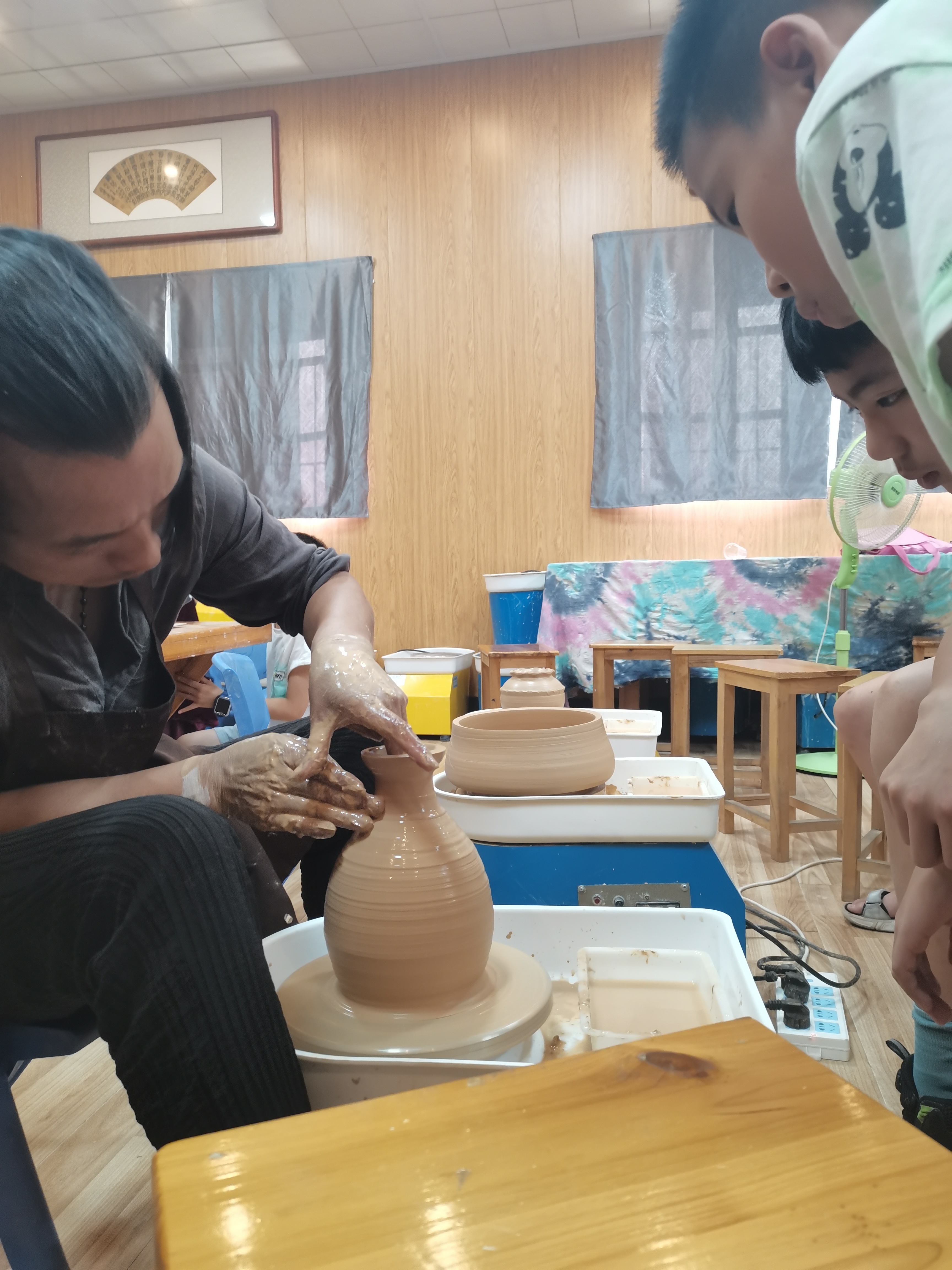 本次活动邀请婺州窑陶瓷烧制技艺代表性传承人吕永明现场授课,通过前往全国重点文保单位铁店窑遗址研学,陶艺拉坯、修坯、上釉烧制等技艺学习,培养一批了解婺州窑历史、热爱婺州窑文化的非遗小传人。“原来泥巴还可以这样玩,这个课真的太有趣了,暑假一下子充实了起来!”11岁的董楼佳开心地说。