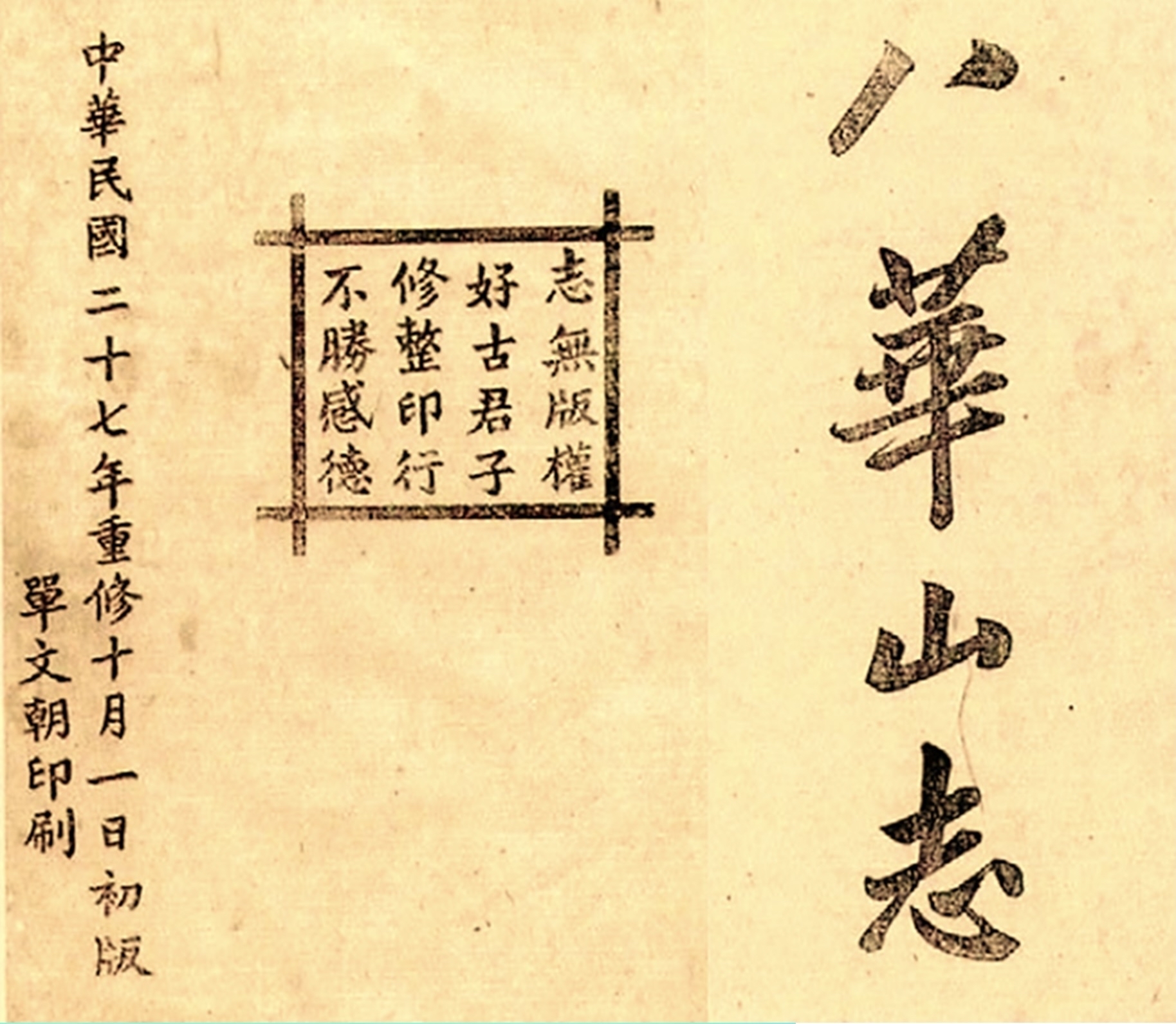 然而,明代东阳人楼如山却在《八华山志序》里写道:“二山并以华名,八与九数亦相近……二山峰峦……大概也不相上下。”楼如山叙述了两山在明代的学术发展情况后,总结陈词道:这两座以“华”为名的山,难道不会在宇宙中争胜吗?