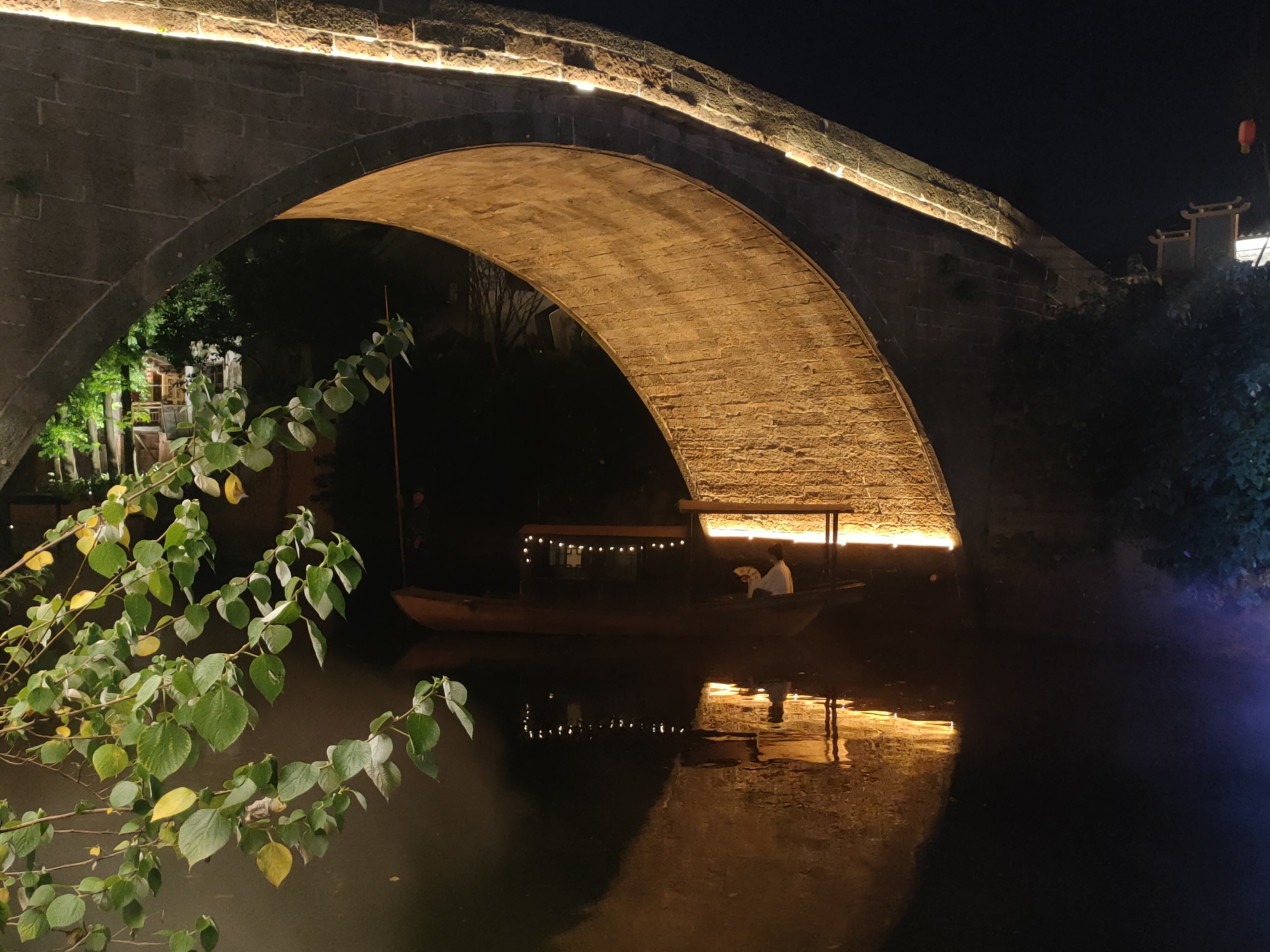 月明星稀,灯火阑珊,船桨悠懒,轻船慢行。少男少女们坐在船中,看岸边之人把酒言欢,桥上之人赏景品画。移舟靠岸,又见有闲情雅致之人,于溪边弹筝写字,于案前点茶品茗,岸边石阶还有人放灯祈福,真是好不热闹。