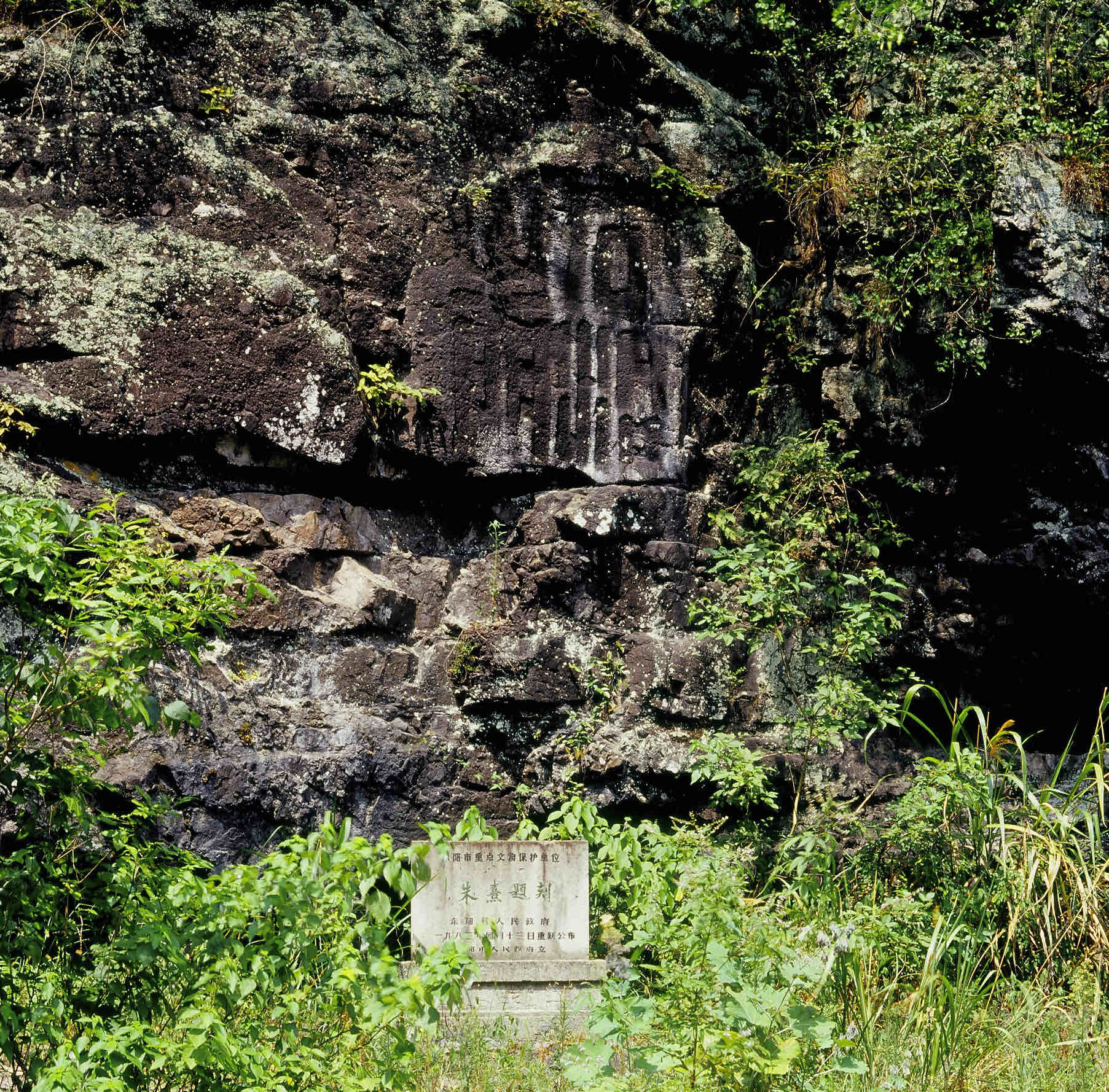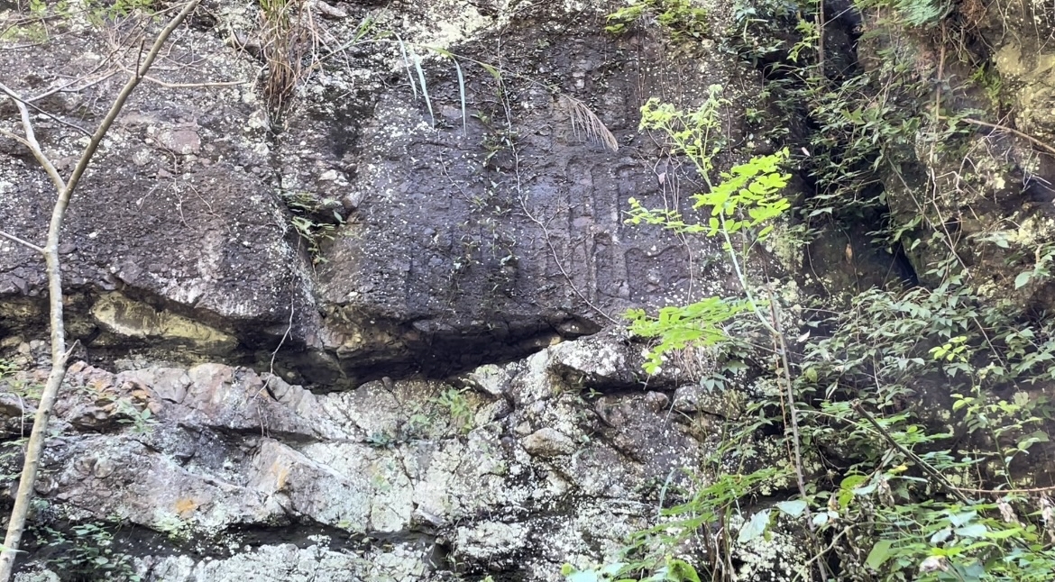沿着石洞书院后山拾级而上,随处可见的藤蔓之间,藏着许多摩崖石刻。据说其中“石洞之门”便是朱熹所题。