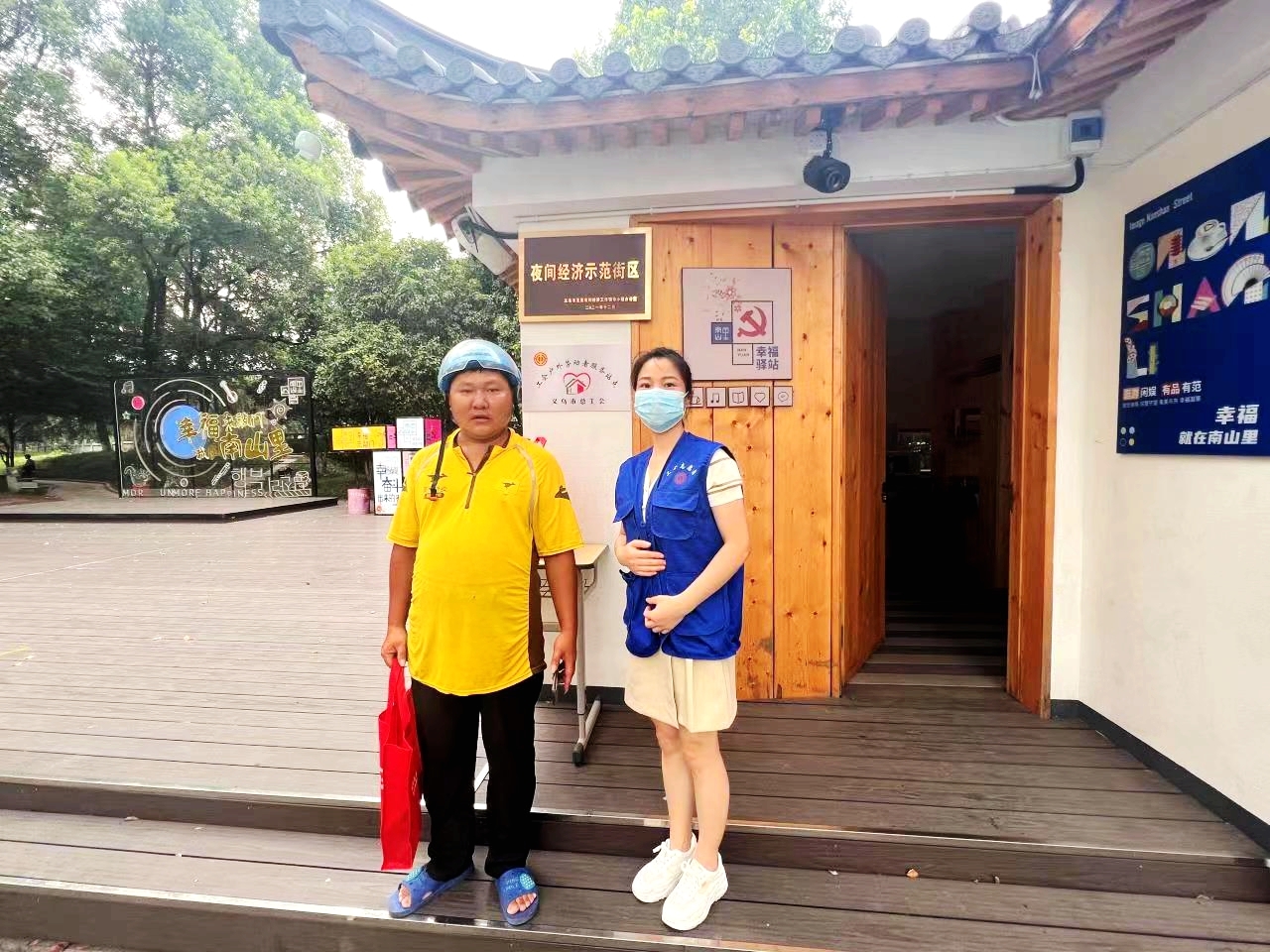 环卫工人刘师傅每天都来南苑社区服务站点歇歇脚,喝喝水,他说:“以前累了就在路边坐着休息,找洗手间也麻烦。有了户外劳动者服务站点,我们有了能喝水、热饭、给手机充电和休息的地方,可以放松一下,下雨了还能躲躲雨,有了家的感觉。”
