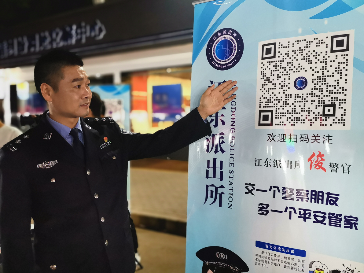 借助“一村一辅警”在江东的全面启动,江东派出所不断探索政务微信在实践的运用,给每位社区民警和驻村辅警配备了一个工作微信二维码,通过出标注身份、扫码加友、一键推送、量化考核、一键移交等具体操作方法,让社区民警和驻村辅警成为辖区群众的“平安管家”。