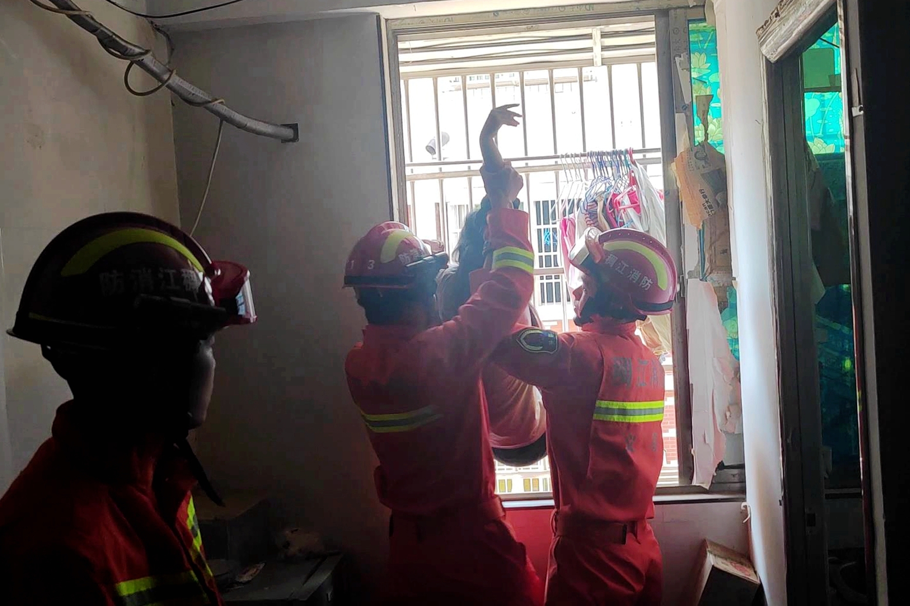 “你别害怕,就这样站着不要动,我们上来救你!”现场指挥员立即让一名队员留在楼下,通过不断喊话安抚女孩情绪,同时带领其余队员飞奔上楼。