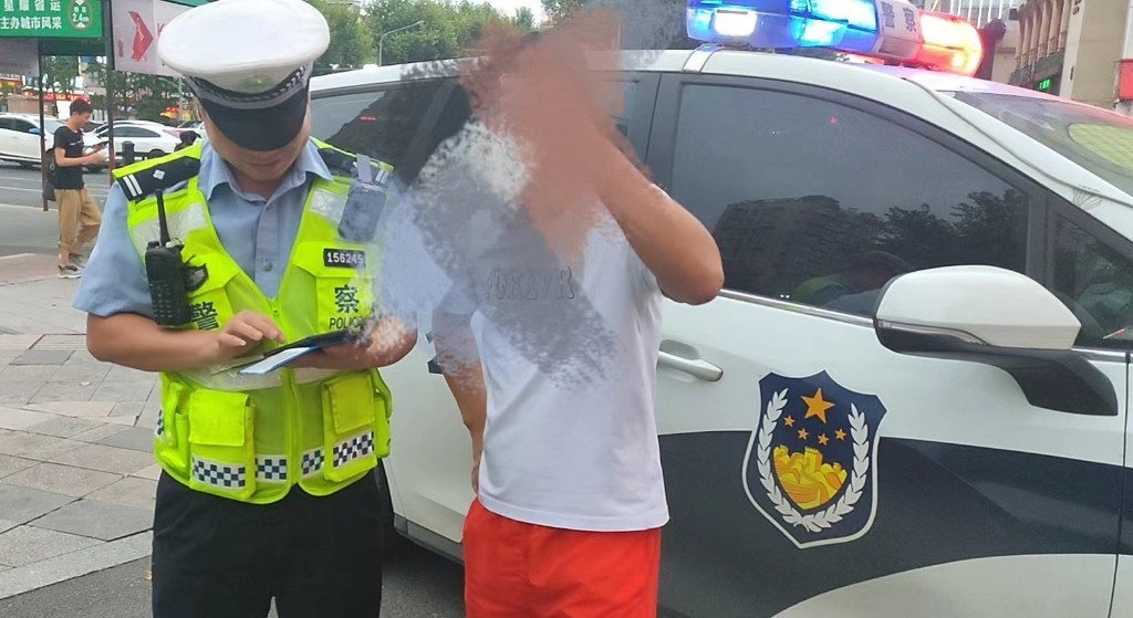7月19日晚上6点半左右,金华交警直属一大队湖海塘中队的警员苏展在一家火锅店门口,发现一辆车的前车牌被一个纸袋遮挡,见此情形,苏展立即让该车的驾驶员王师傅下车,并同时联系上了当日的值班民警董琰忠。