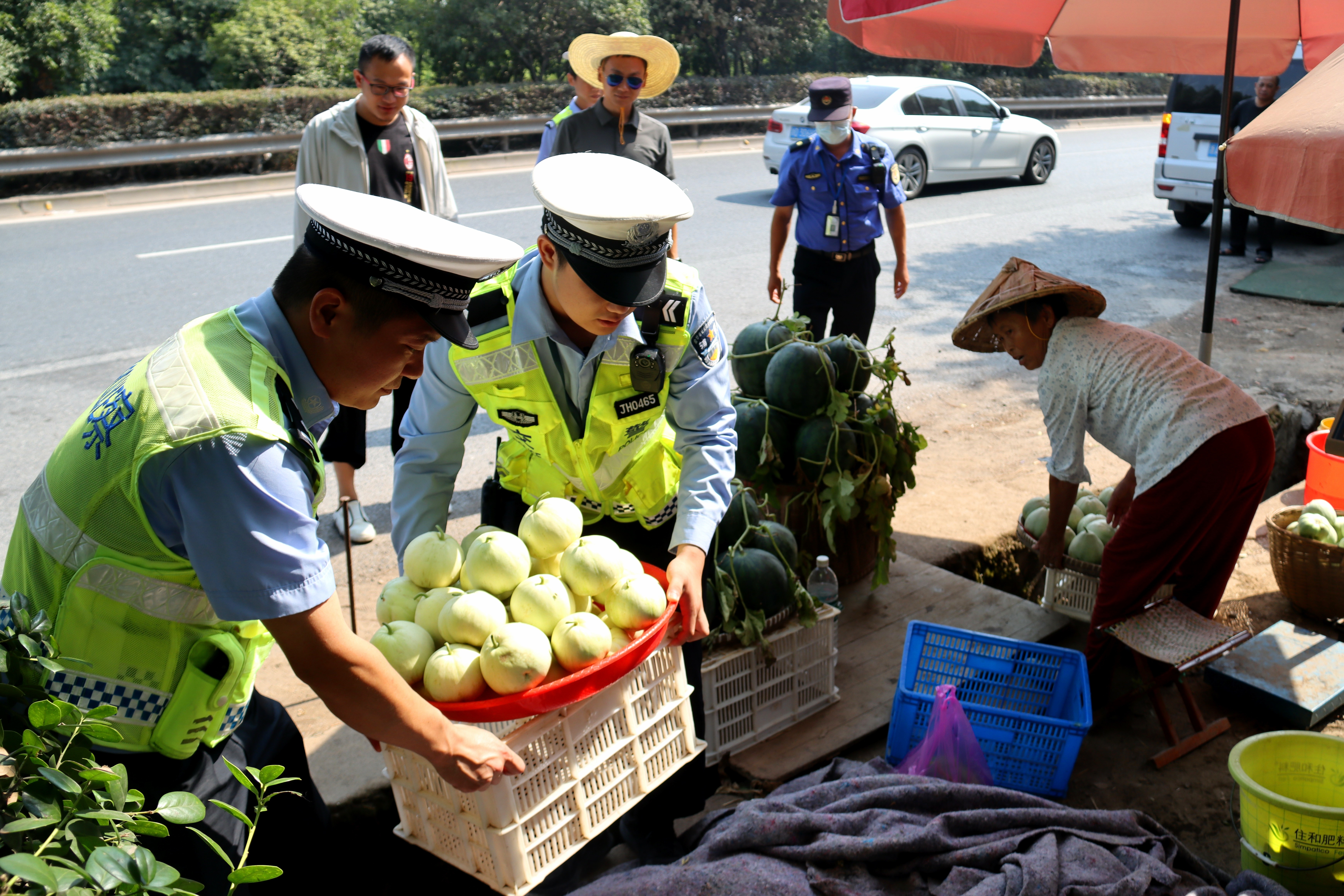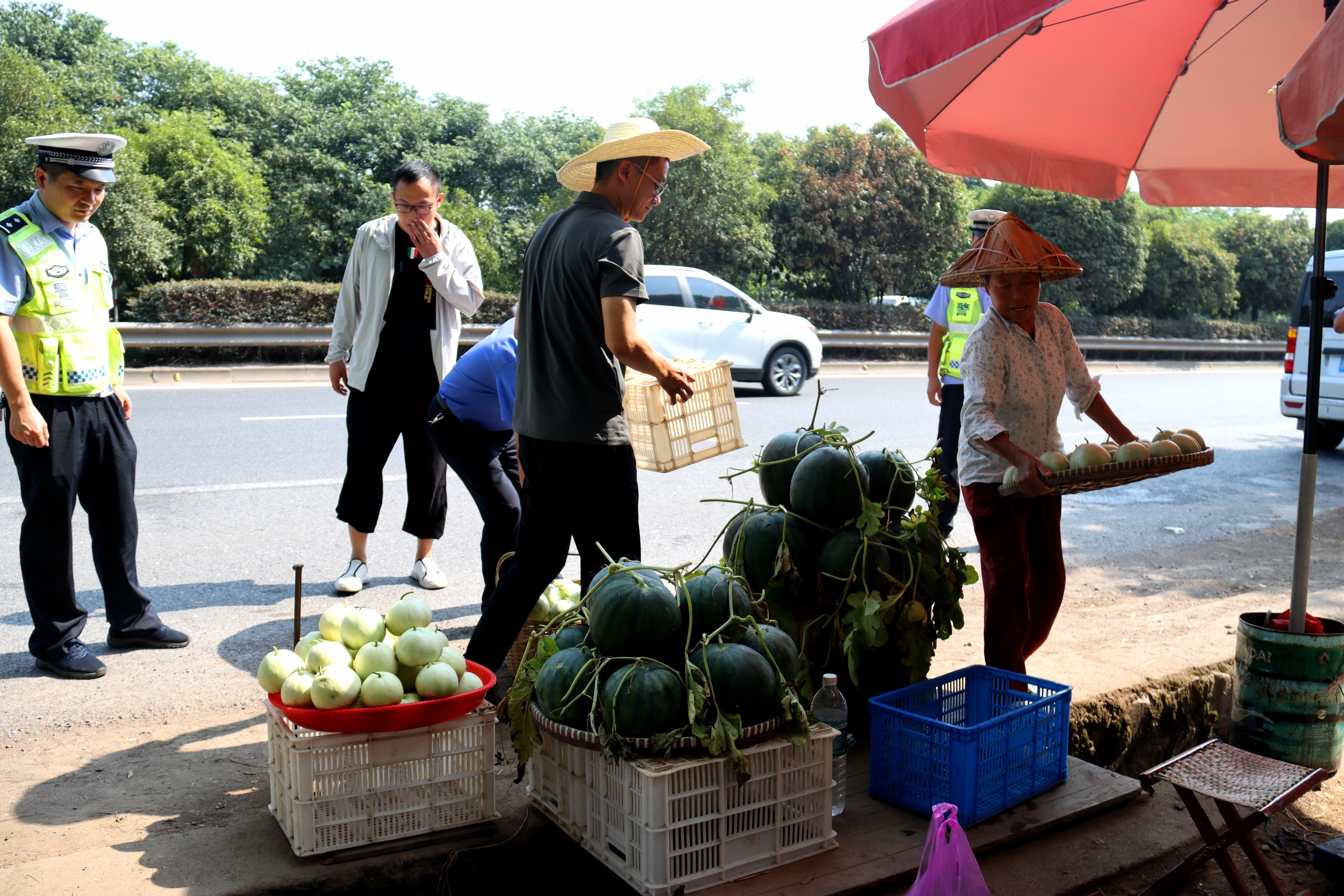 在现场,执法人员向果农耐心讲解《道路交通安全法》、《文明行为促进条例》等相关法律、法规,通过真实案例让果农树立文明经营意识,执法人员在做好的“治理”的同时,也采取人性化管理。在不影响交通畅行的安全地块选取合适场地,设置“临时售卖点”提示牌,提醒来往车辆注意安全。同时通过发动镇、村各方力量帮助果农推销水果,从根本上解决路边摊 整治难问题。