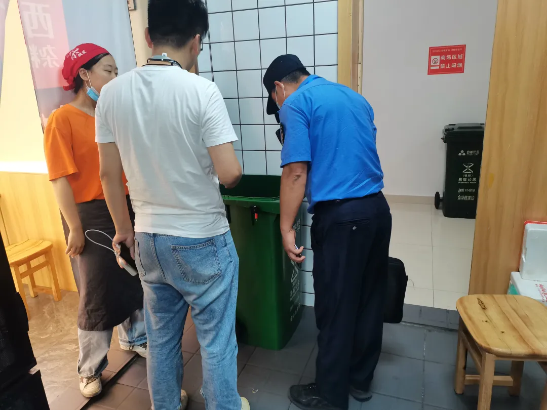 检查过程中,执法队员发现万固商场内有部分新开张的餐饮店不清楚相关规定,比如要统一设置餐厨垃圾桶并由有资质的公司统一收运。对此,执法队员当即进行宣传教育,告知经营者要严格按照要求处理垃圾,减轻卫生填埋场的填埋压力和相关的环保问题,提高餐厨垃圾的资源利用率,将餐厨垃圾变废为宝,做好资源循环再利用。