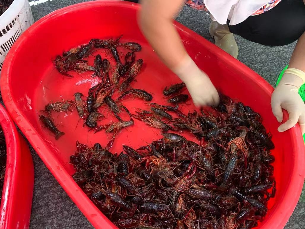 同时,随着各类“蟹老板”等海鲜上市,金华人最爱的小龙虾即将谢幕。记者在市场里看到,虽然还有少量的摊位在销售小龙虾,但品质和价格已经明显没有了优势,软标的中青个头小,在批发市场的价格为40元每公斤左右,硬标的中青在56元每公斤,“小龙虾快结束了,量少,所以价格会偏高”。