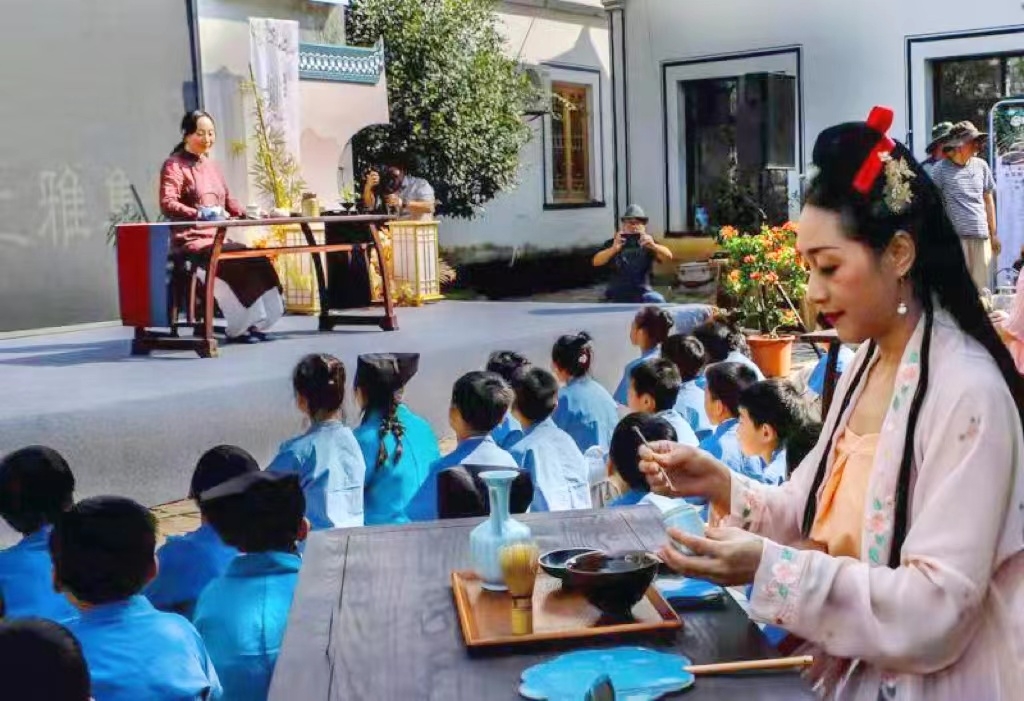“千古风流八咏楼,江山留与后人愁。水通南国三千里,气压江城十四州。”近日,在雅畈镇一村文化礼堂,伴随着管弦鼓乐,李清照的诗词融入特色的婺剧表演里,咿呀婉转,吸引了众多村民前来观看。