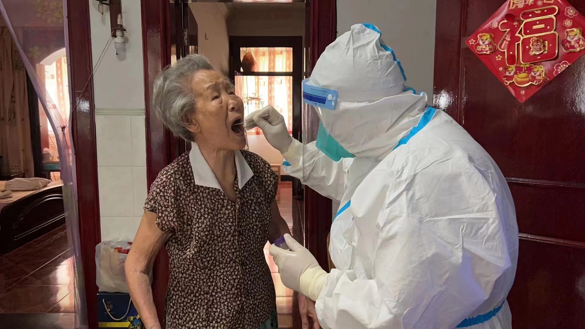 在中村社区,看到居民行动不便,综合行政执法队员主动上前搀扶居民做核酸。高畈社区和南苑社区组织大白上门为行动不便的老年居民进行核酸采样。高效有序的组织和充满温度的服务,换来的是社区居民的配合。尽管前段时间摔伤腿脚有些不便,走路还是一瘸一拐的,但南苑小区居民董女士还是坚持到广苑广场核酸采样点进行采样。“工作人员都这么辛苦,我们走这点路算什么。”董女士说。