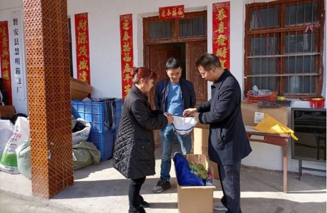 工行结对帮扶小组上门为磐安县九和村来料加工经纪人进行加工订单对接。