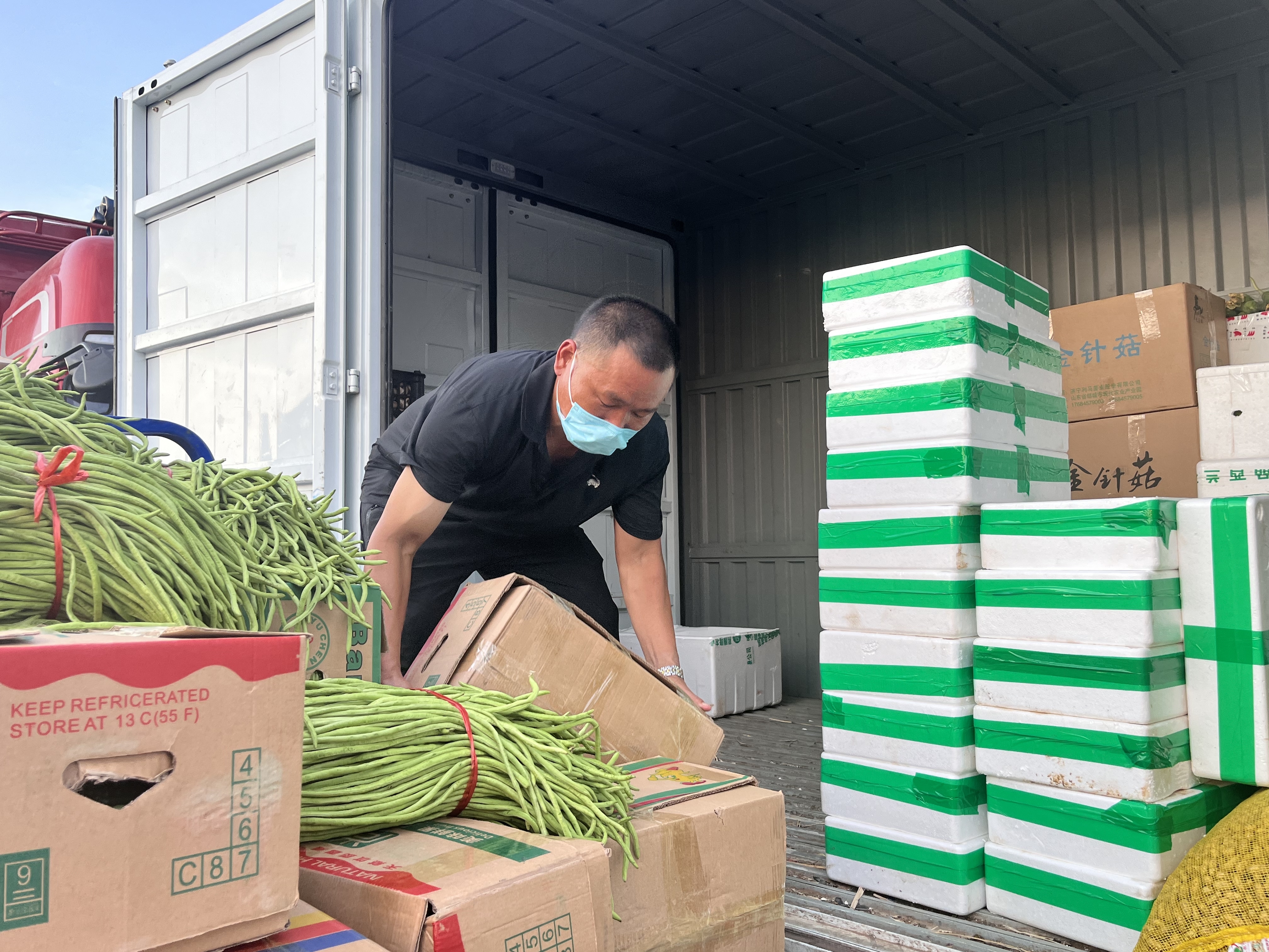 当天现场,记者看到一辆满载600箱新鲜蔬菜、重达5吨的配送货车正好完成装货,即将奔赴周边县市。