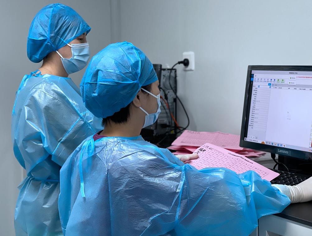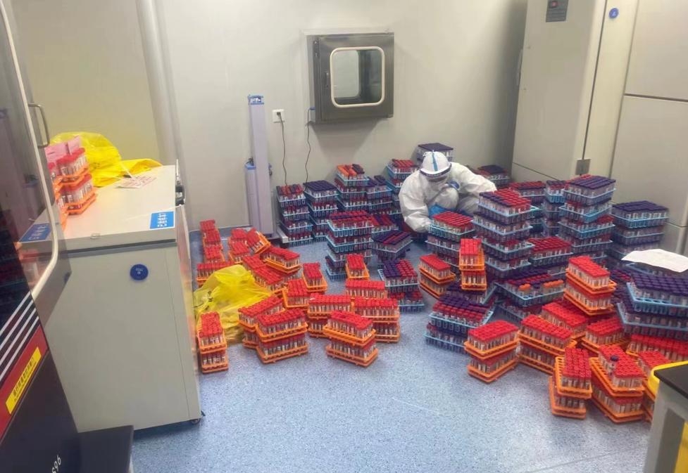 扩增区虽然不用穿防护服,但扩增仪工作时温度达105度,50台扩增仪同时工作散发的热量,即便有空调,仍然十分闷热。半天工作下来,相对瘦弱的赖陈洁出现了头晕胸闷等中暑症状。基地负责人知道情况后,立即买来两箱冰块,用来降低扩增区温度,尽可能改善工作条件。“凌晨四五点是最想困的时间,甚至眼睛看东西都是重影的。大家都在拼尽全力,累点不算什么。”童倩笑着说。从凌晨一点进实验室,到早上八九点发出所有结果,为了第一时间发出检测报告,她们一直坚守到最后。