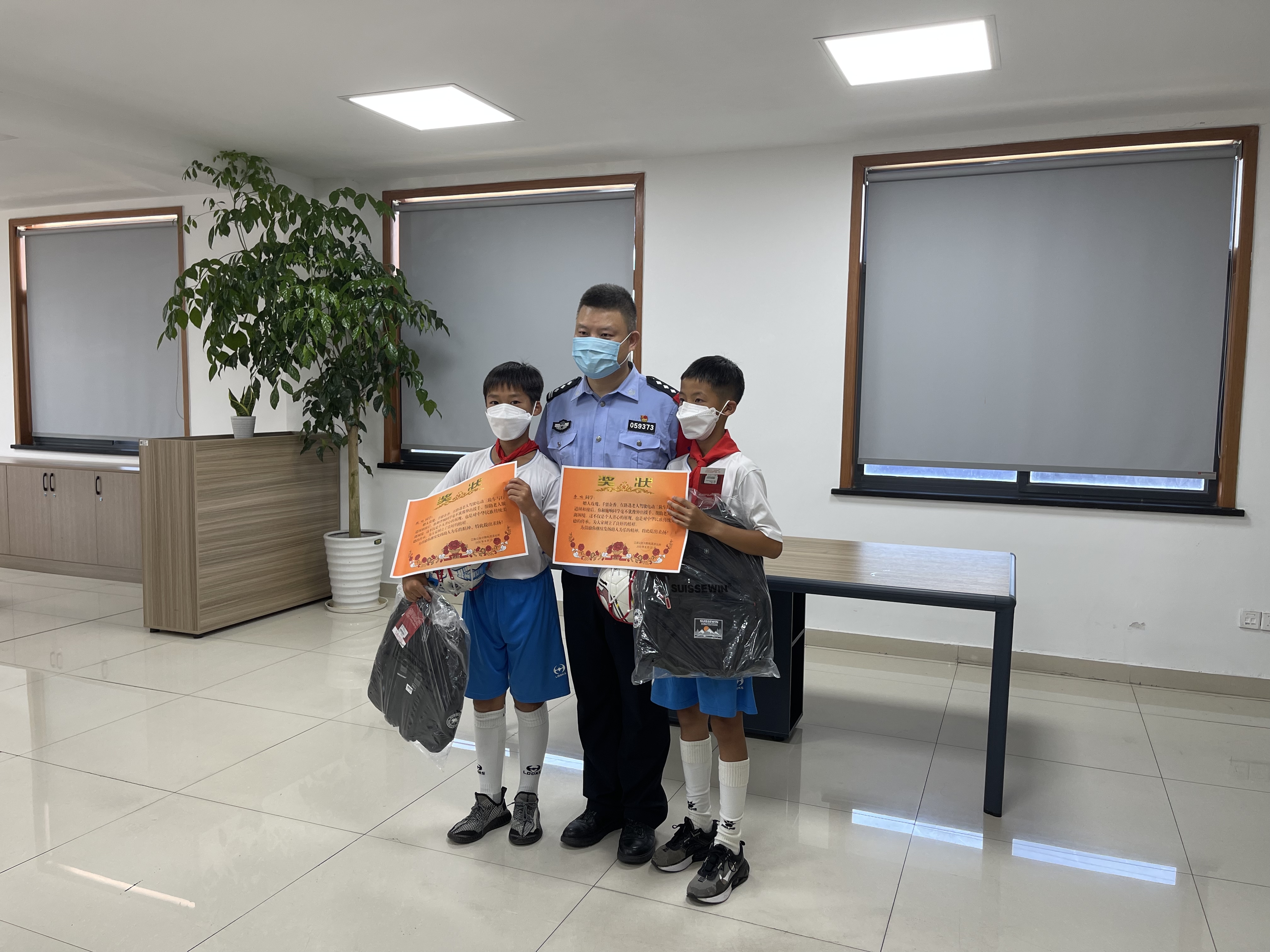 8月22日上午,江南公安分局秋滨派出所民警为两名小学生颁发奖状,并送上小礼物,表扬他们及时伸出援手,帮助受伤老人,为大家树立了良好的榜样。