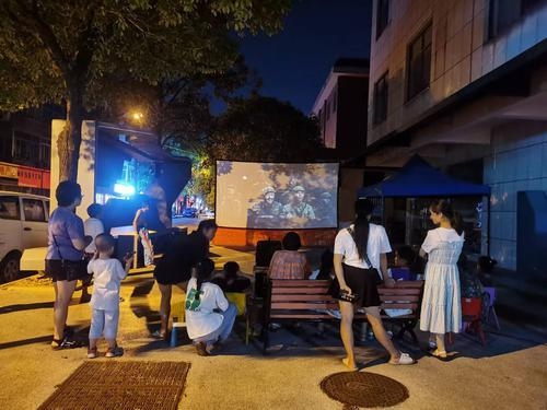 8月22日晚,金华开发区宣传部“喜迎二十大、公益电影进社区”,来到了江南街道南苑社区。 当天晚上,在南苑社区北面小广场, 《血战狙击岭》公益电影7点准时放映,尽管气温高天气热,但是现场还是吸引了许多社区居民前来观看。据了解,此次金华开发区在4个街道的各个行政村、社区,公益展映800场迎接党的二十大胜利召开。