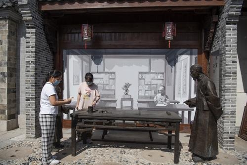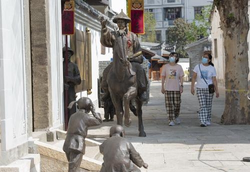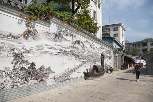 8月23日,记者在市区将军路以北的酒坊巷看到,以铜雕、壁画、园艺、古建筑等展示为内容,显现于“婺州古城”原太史第巷老街巷中,亮点多多有:读书人的爱国爱乡、仕途、廉洁、宋韵文化、考寓文化等“古城故事”,是市民又一处游玩、摄影之地。