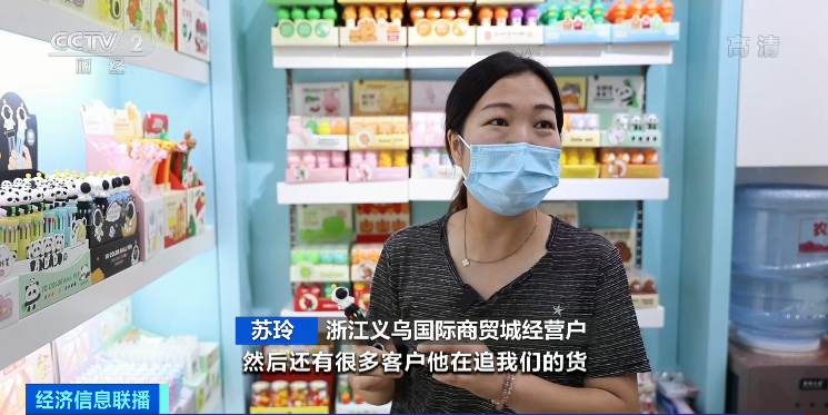 浙江义乌国际商贸城经营户 苏玲:已经断货三批了,有很多客户在追我们的货,问什么时候出货。这是第四次补单,一次补单我们会下单几百件。