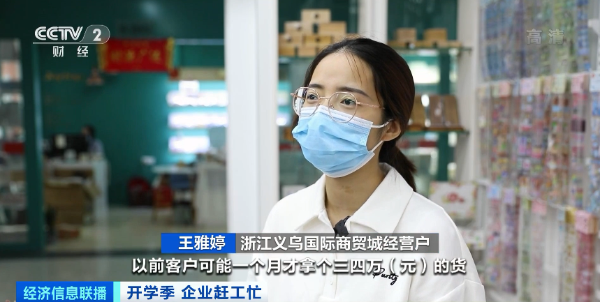 浙江义乌国际商贸城经营户 王雅婷:以前客户可能一个月拿三四万元的货,现在客户一个月可能拿几十万元的货,有的可能接近百万元。